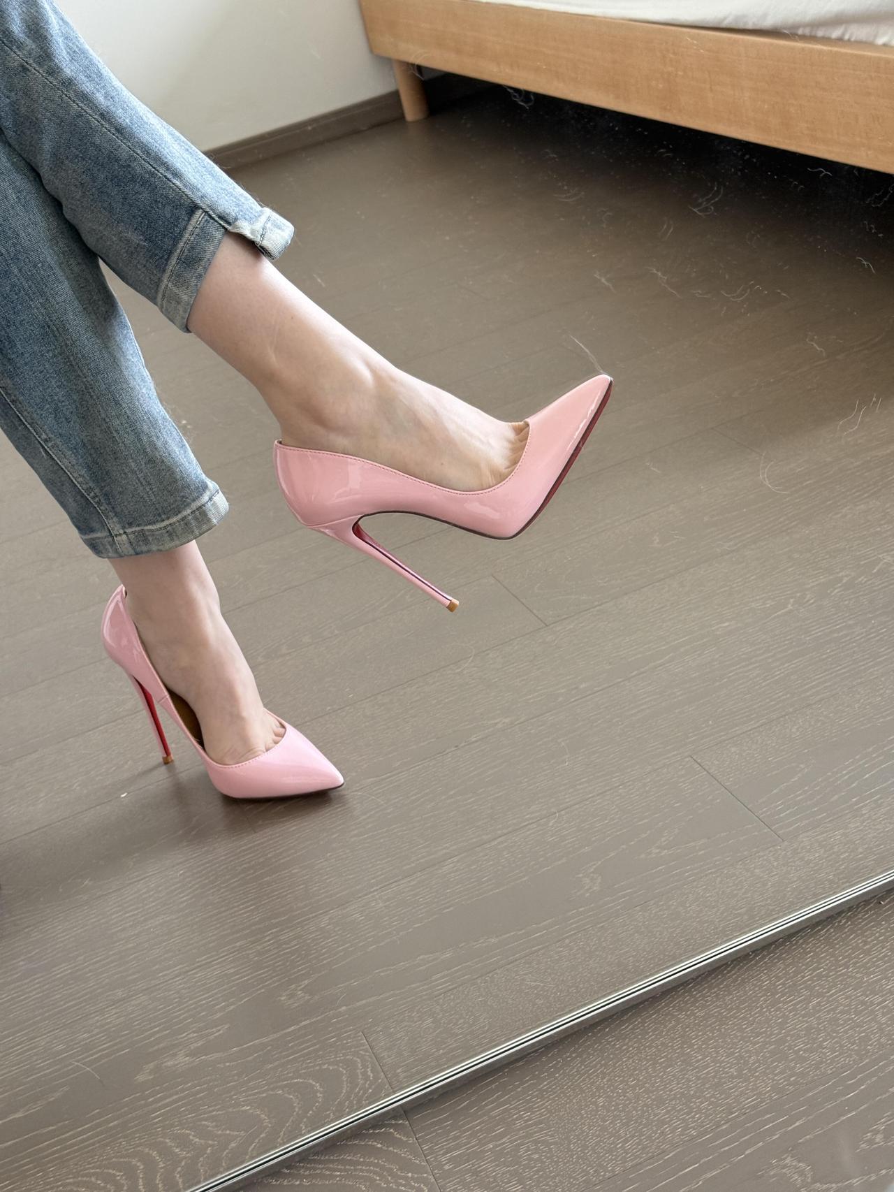 一双粉色高跟鞋配牛仔裤,好搭哦