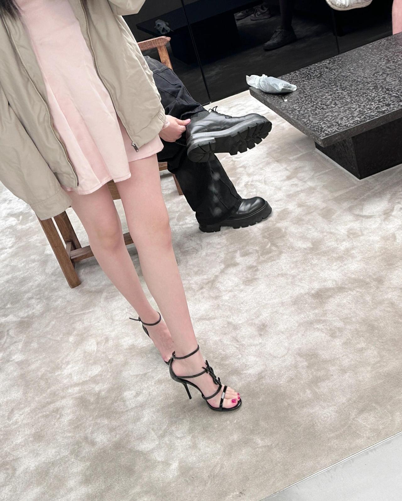 一双粉色高跟鞋配牛仔裤,好搭哦