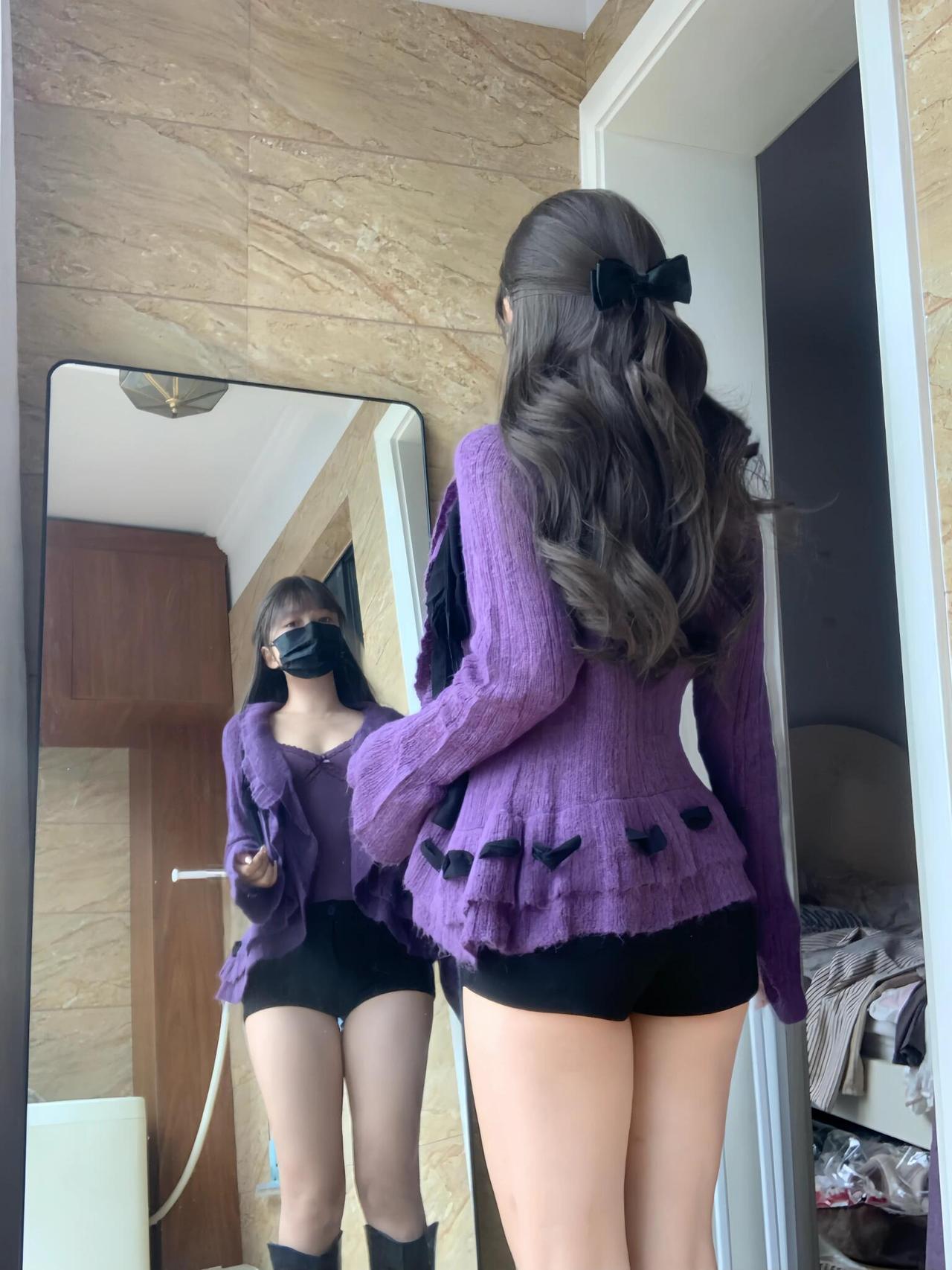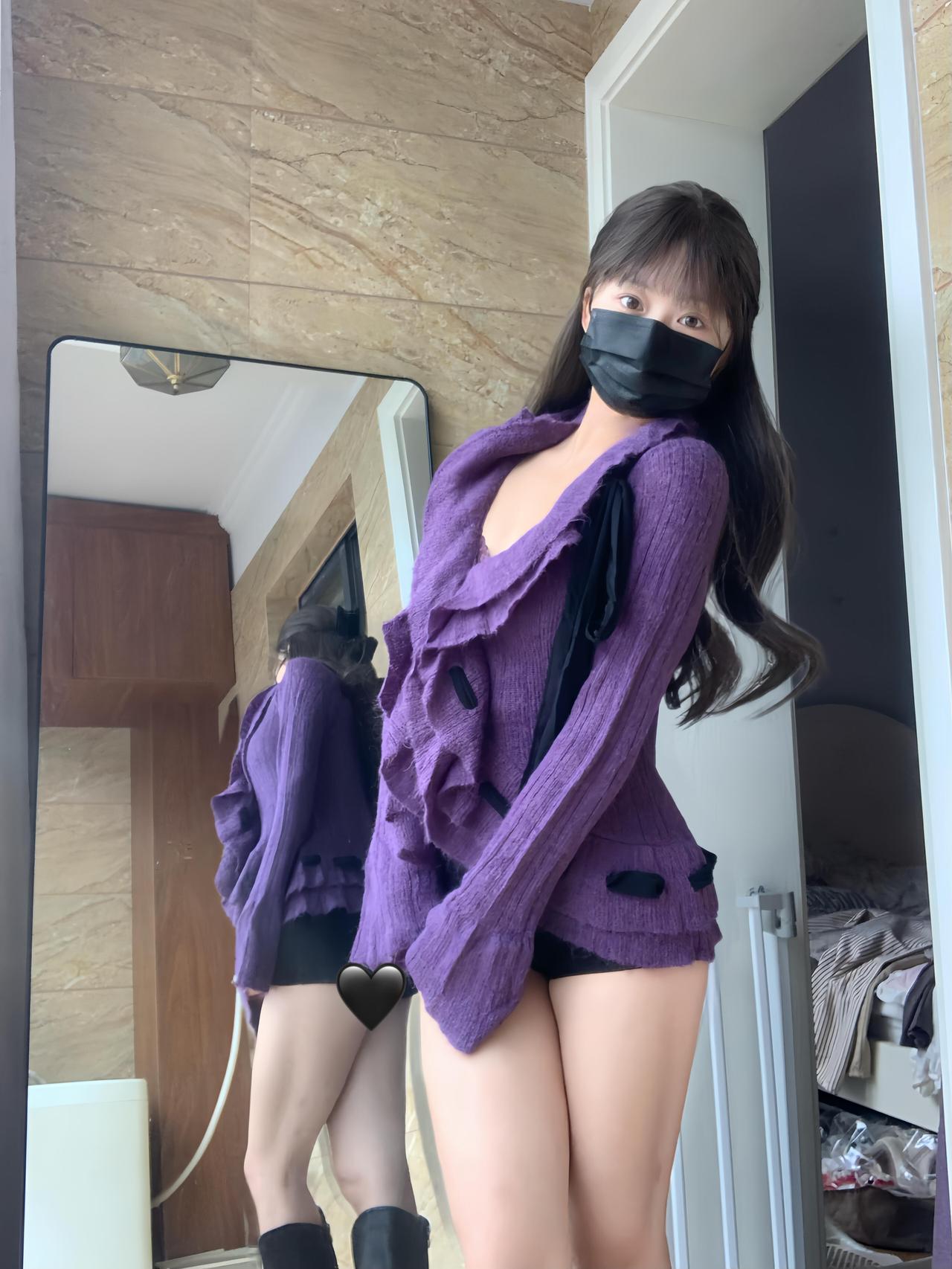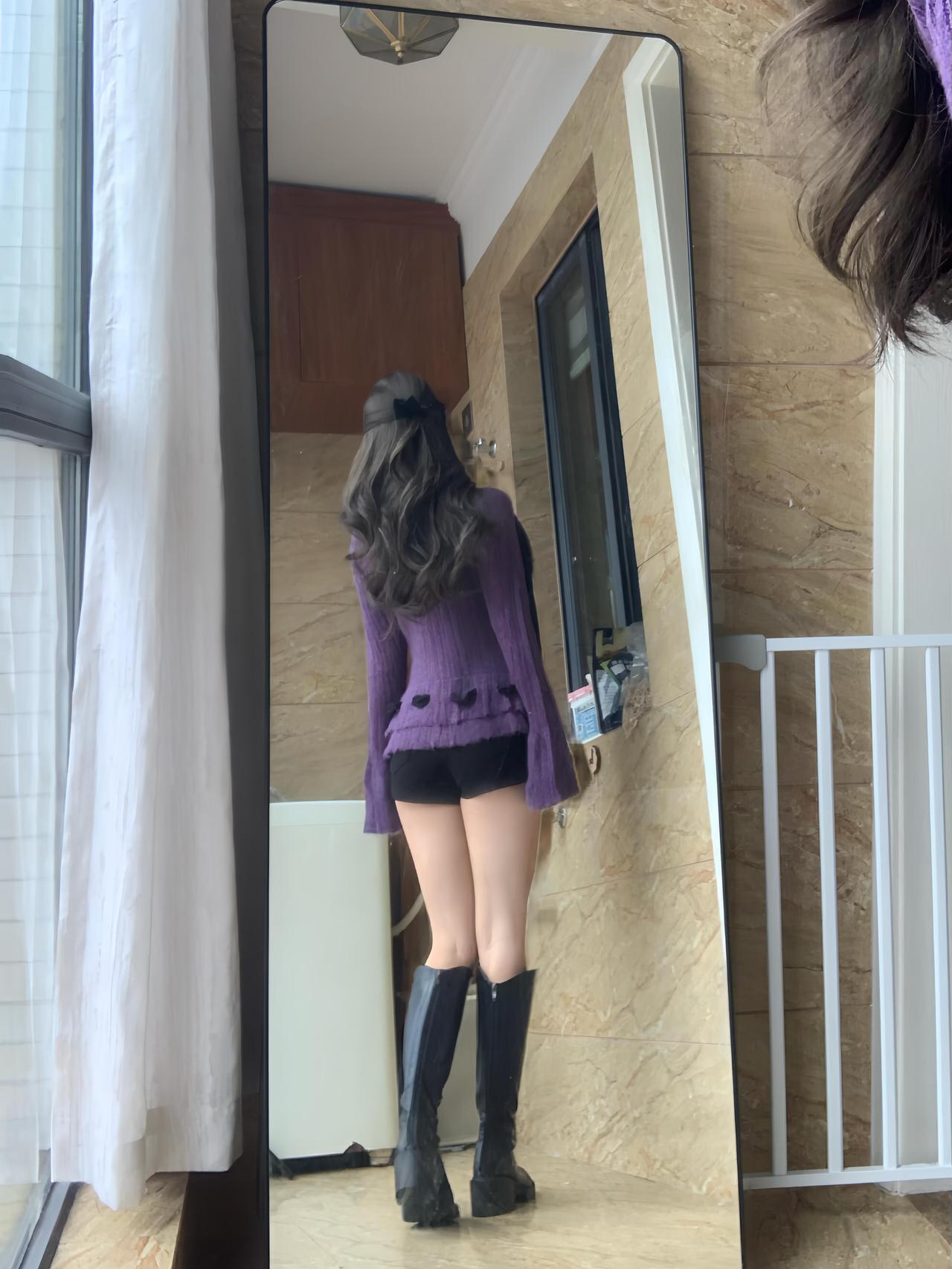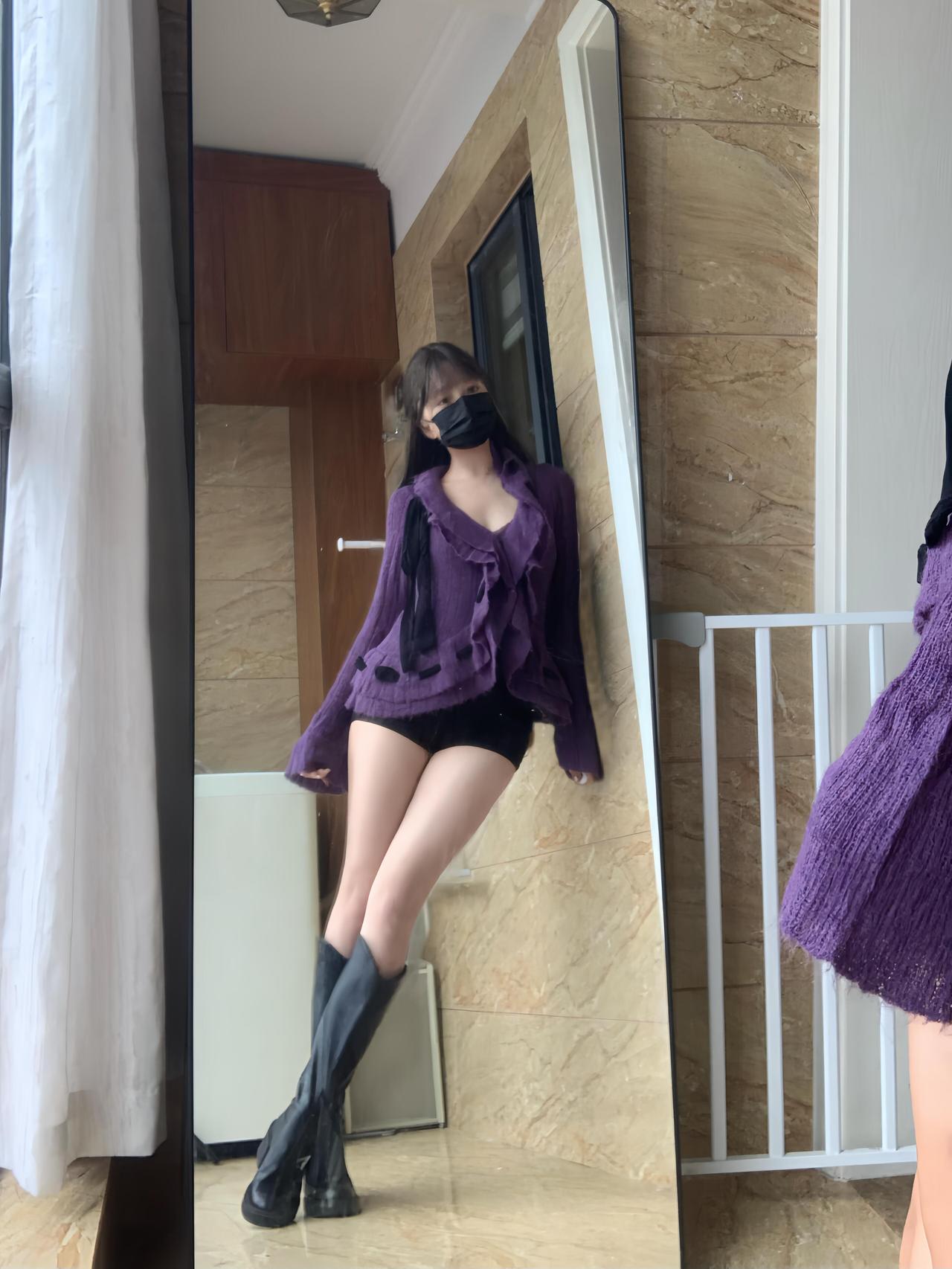 秋冬服饰焕新季 紫色毛绒外套+黑色短裤,时尚又保暖的穿搭!💕