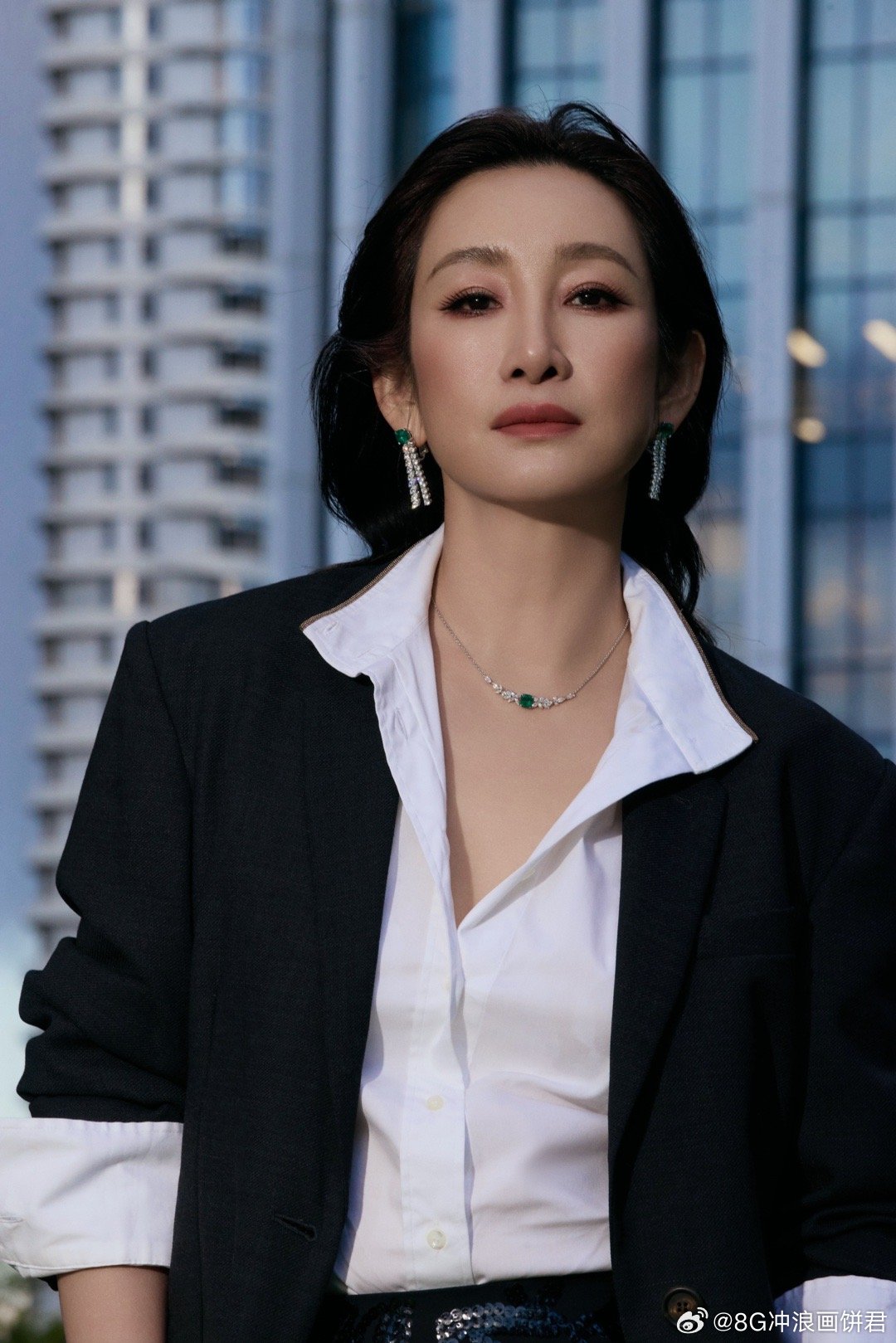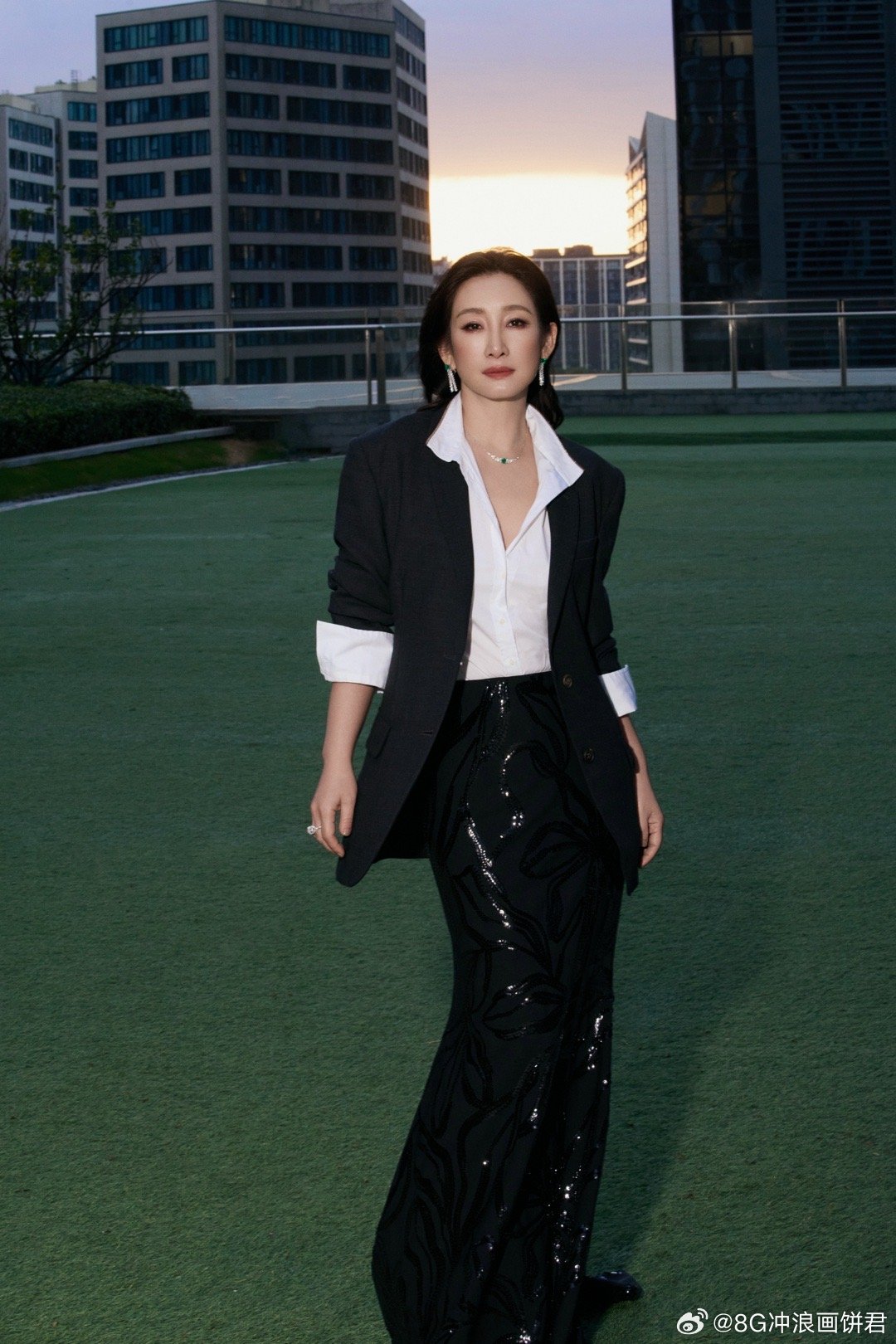 女明星VOGUE盛典造型出图秦海璐VOGUE盛典造型好飒,纯黑珠链领羊毛西装夹克配以白色棉府绸衬衫、闪耀花卉刺绣羊毛人鱼半裙,一整个气场全开,姐状态有点不错。