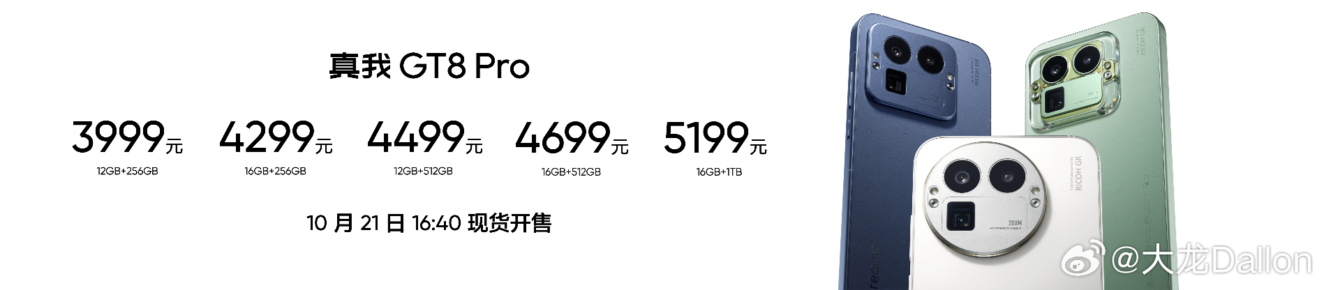 2025 年 10 月 21 日,真我在北京发布旗舰新品 GT8 系列,包含 GT8 Pro 与 GT8 两款机型,当日 16:40 同步开售,起售价分别为 3999 元和 2899 元。发布会上,真我中国区总裁徐起回顾品牌 7 周年历程,称已积累 3 亿用户,GT 系列延续 “敢越级” 初心。