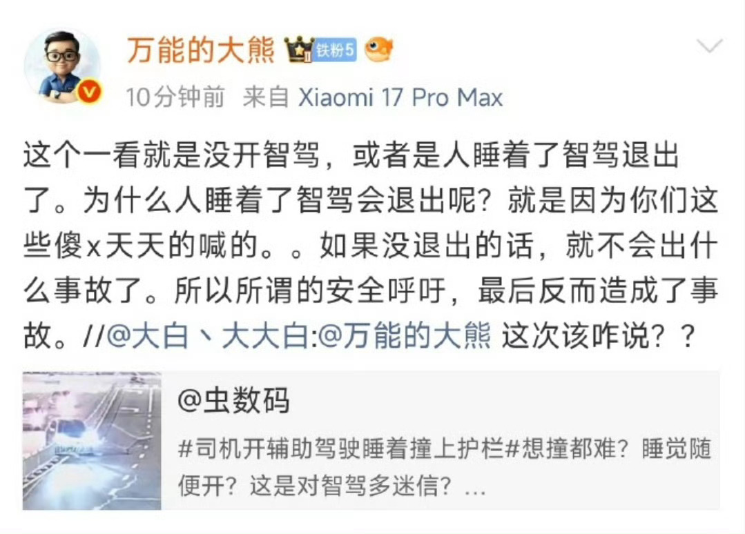 大熊老师为不安全驾驶的辩护,真的是大开眼界。[费解]