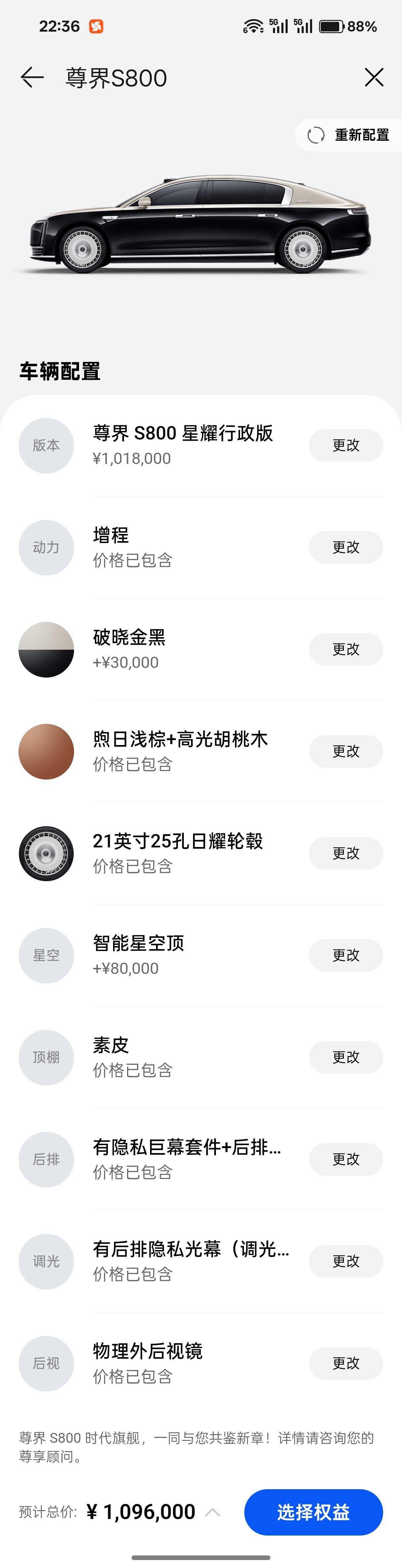 指导价 101.8万选配智能星空顶 80000元