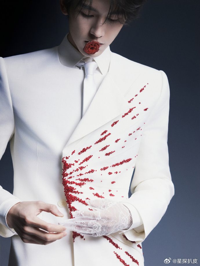 张凌赫第二套白蕾丝手套➕咬红玫瑰[流鼻血][跪了]跪了......