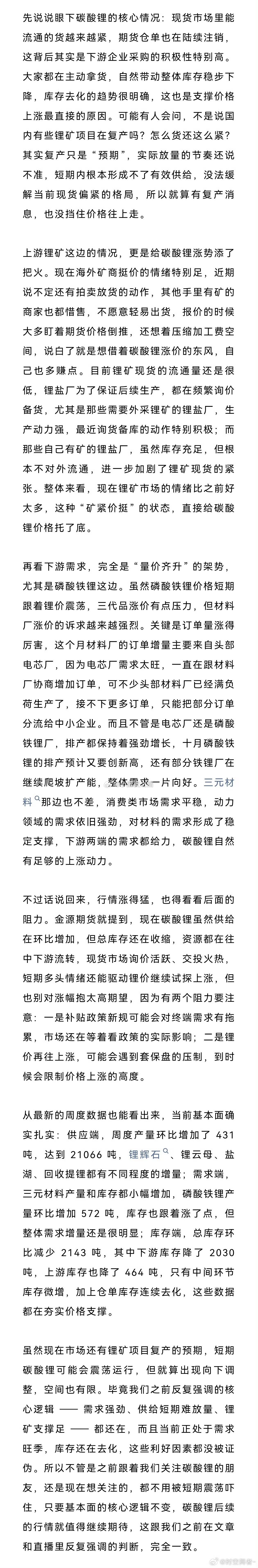 碳酸锂 现货市场里能流通的货越来越紧,期货仓单也在陆续注销,这背后其实是下游企业采购的积极性特别高。大家都在主动拿货,自然带动整体库存稳步下降,库存去化的趋势很明确,这也是支撑价格上涨最直接的原因