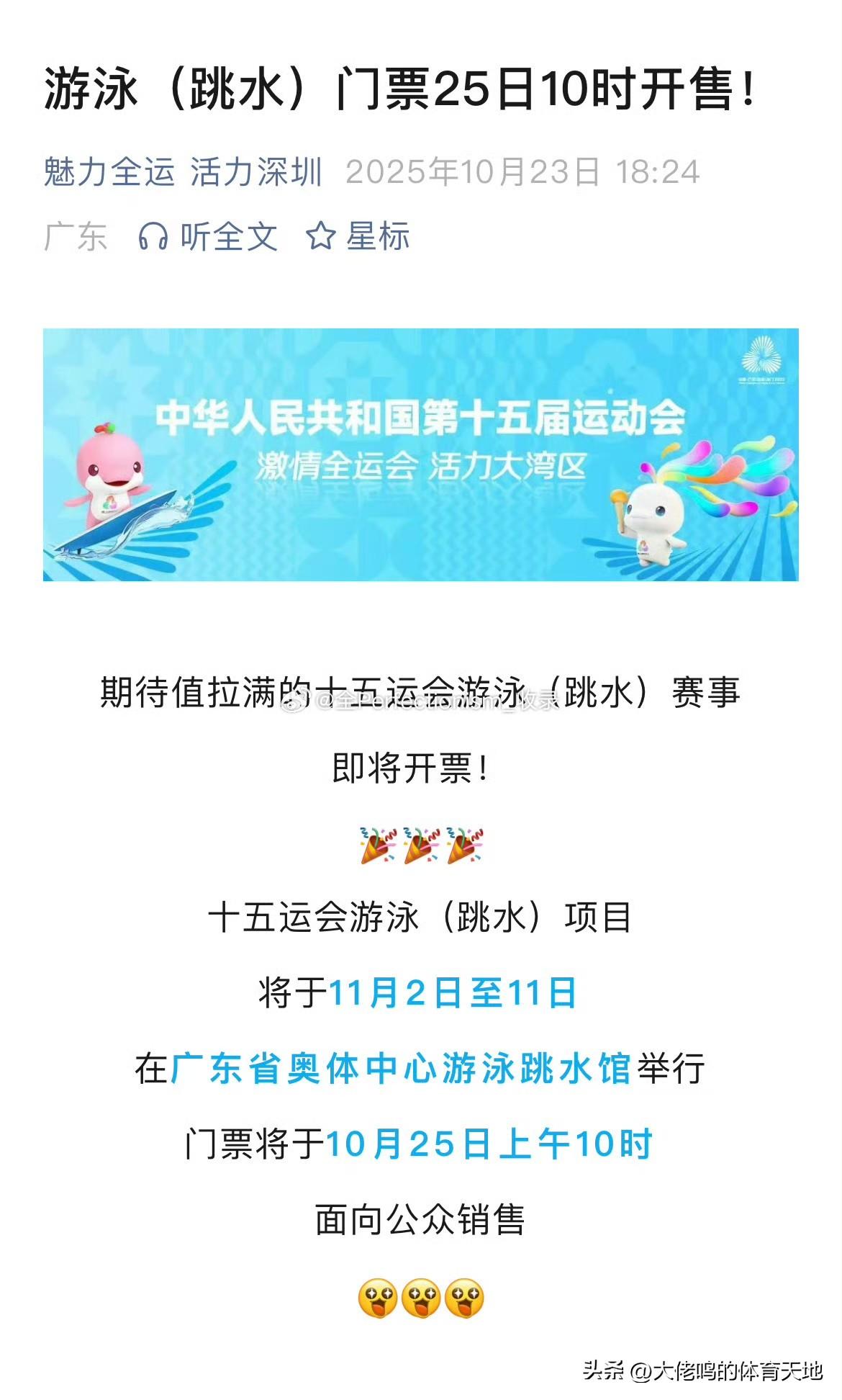 后天上午开票 就在广州比,能看到全红婵、陈芋汐,估摸着一票难求,希望别几秒就卖光就好[允悲]