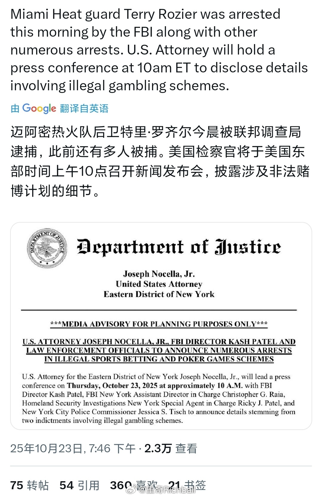罗齐尔被逮捕