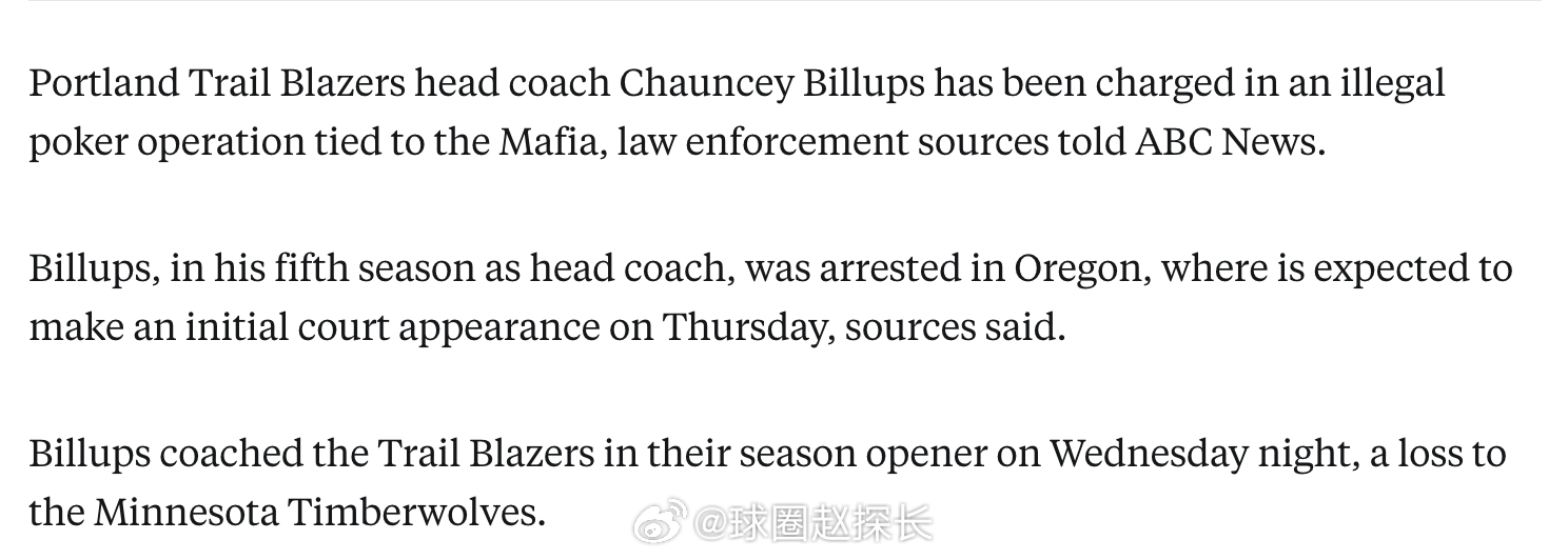 美国媒体ABC报道比卢普斯被捕事件,他就是在俄勒冈州被捕,当地时间周四就会出庭。不过看报道他这还跟黑手党有关系?罗齐尔单纯就是赌球被查出来了,老比这个有点复杂,这俩不属于同一事件,但算是属于同一总体调查。