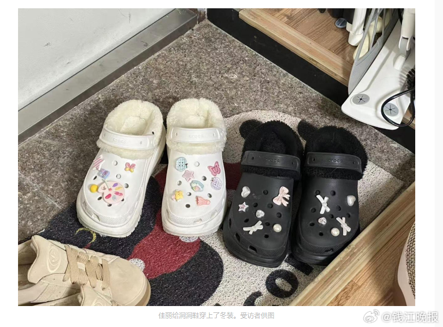 【#洞洞鞋比我更早穿秋裤#】天冷了,你的棉毛裤穿上了吗?穿了一夏天的洞洞鞋怎么办?一种高性价比的过冬方案,正让洞洞鞋得以“超长待机”——那便是加装毛绒内胆。