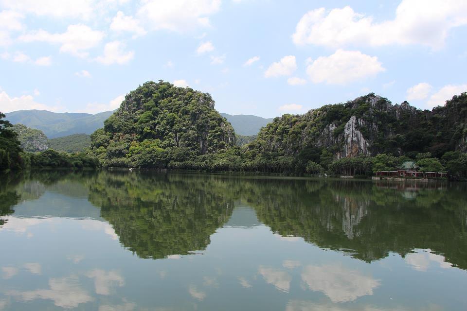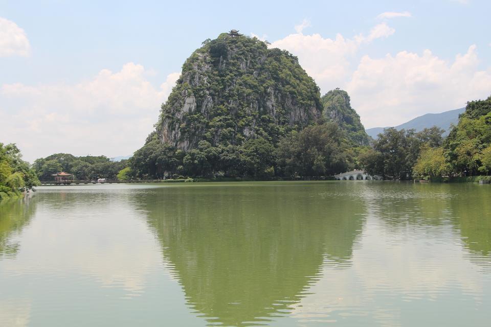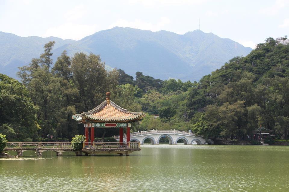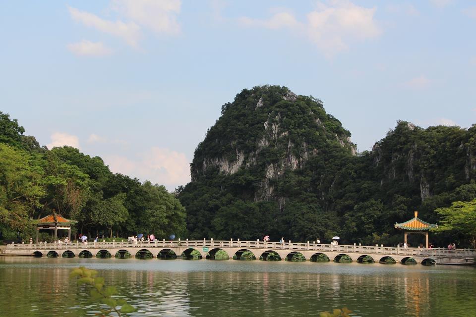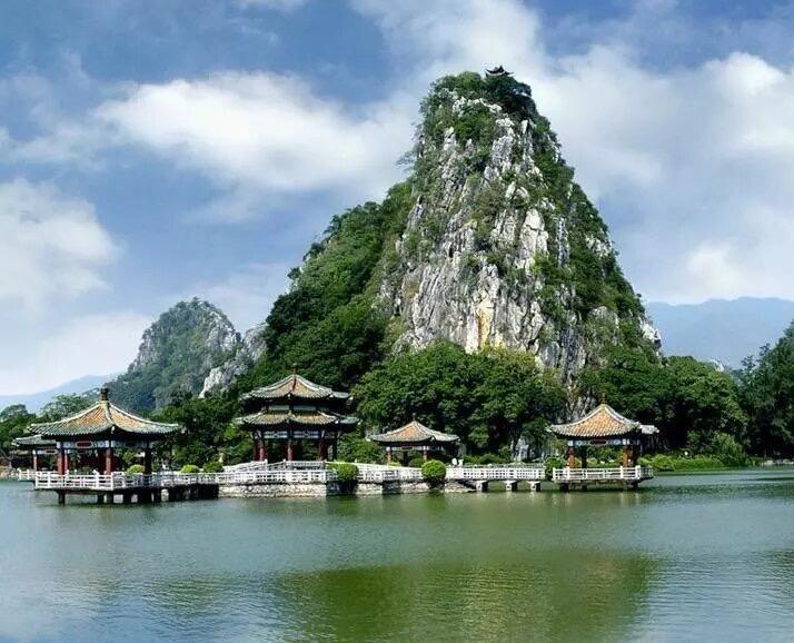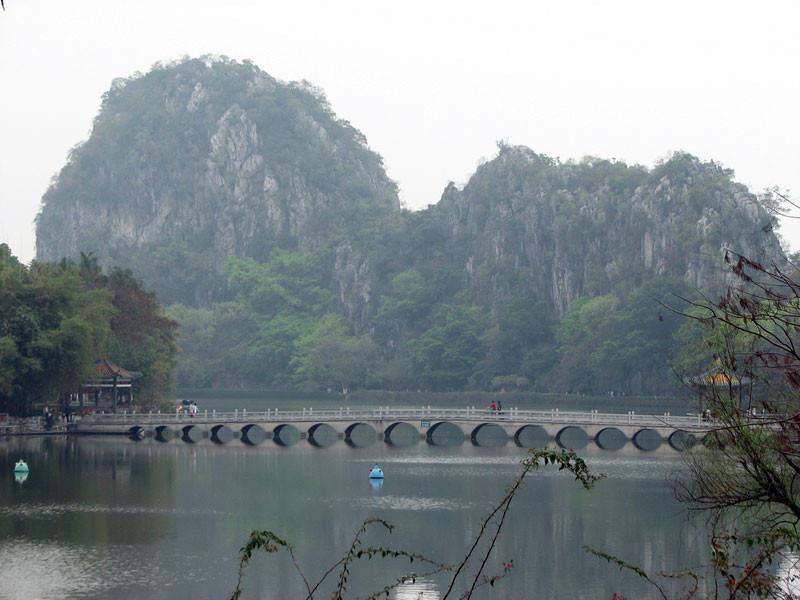 七律·重游肇庆星湖 紫荆十里舞霓裳, 玉鉴星岩降仙娥。 云中鹤唳争比翼, 流水