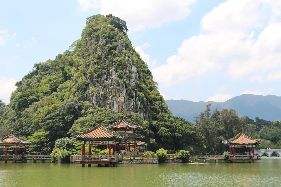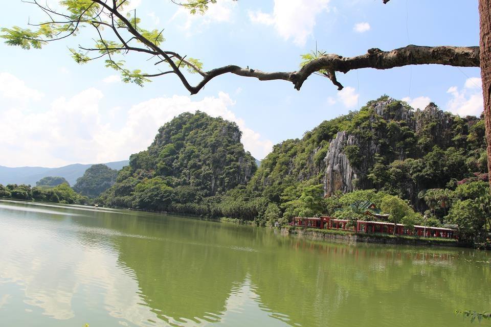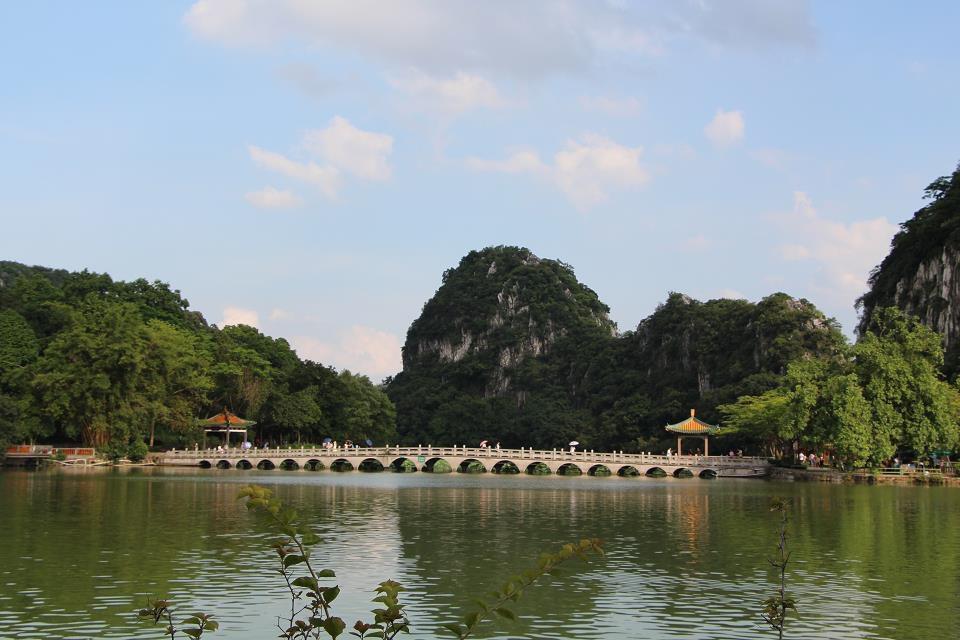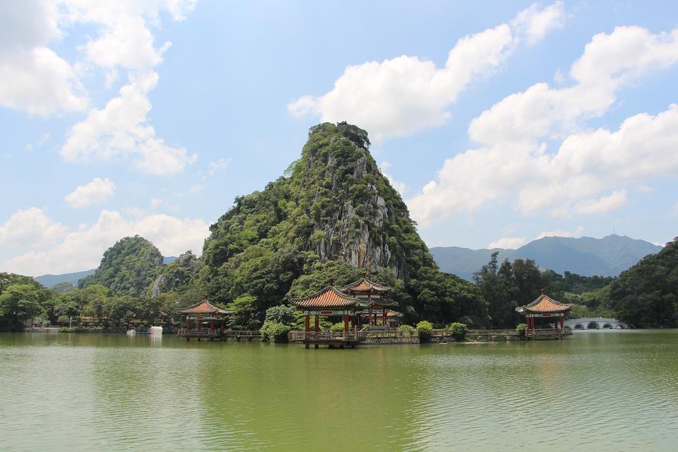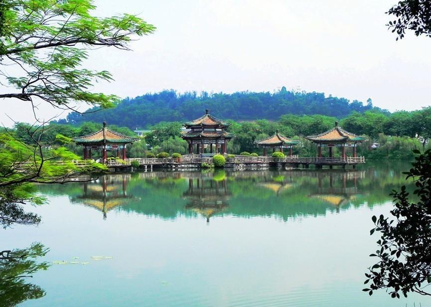 七律·重游肇庆星湖 紫荆十里舞霓裳, 玉鉴星岩降仙娥。 云中鹤唳争比翼, 流水