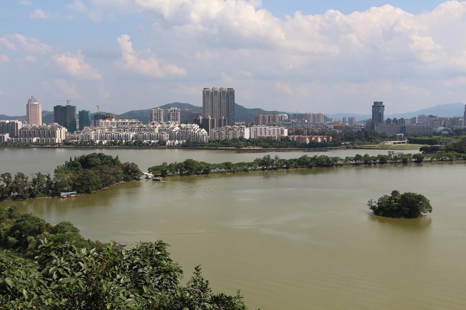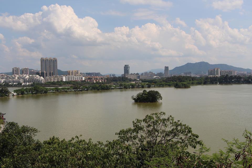 七律·重游肇庆星湖 紫荆十里舞霓裳, 玉鉴星岩降仙娥。 云中鹤唳争比翼, 流水无声纳百舸。 佛卧山峦衔落日, 霞铺锦缎映澄波。 岭南独秀无双誉, 五A名湖耀五洲!