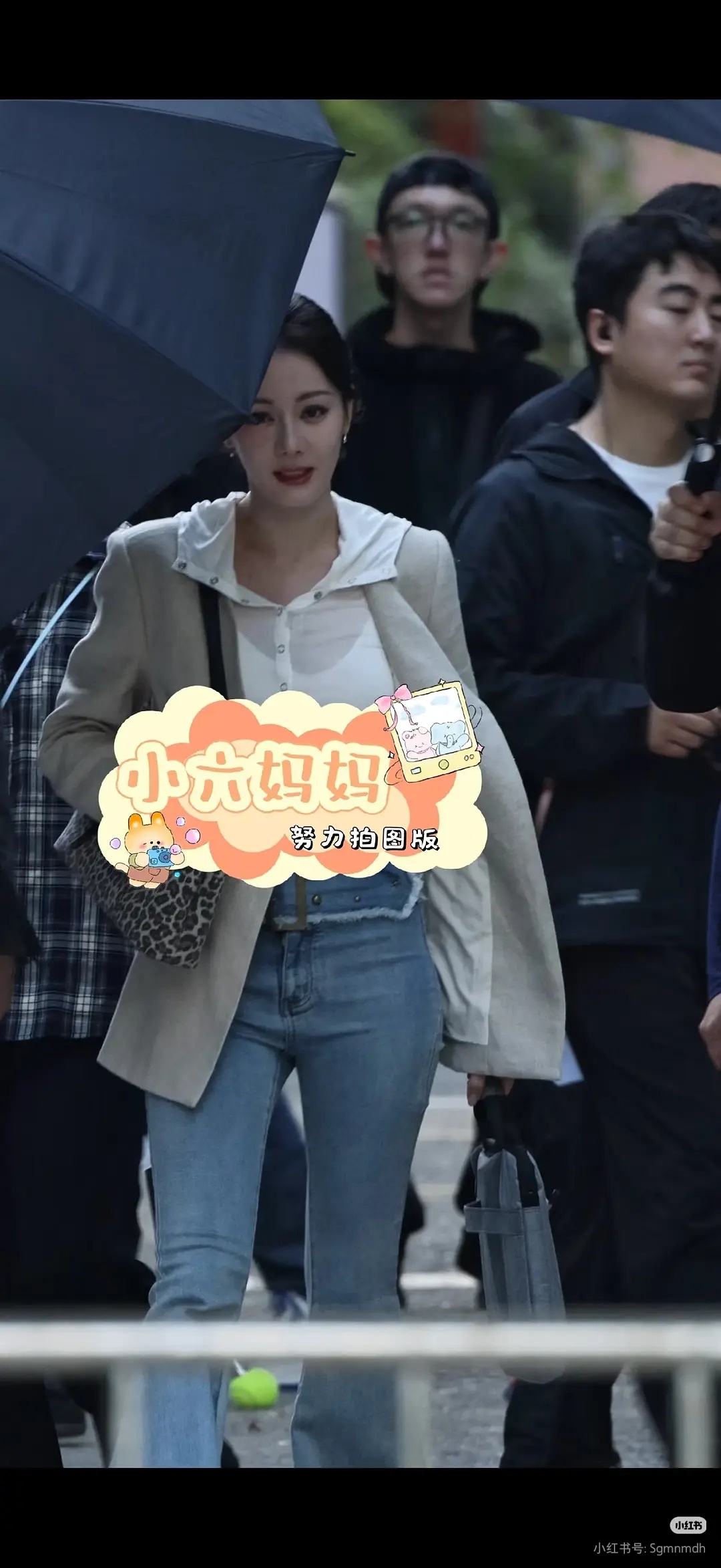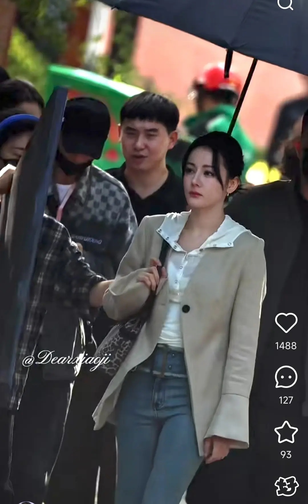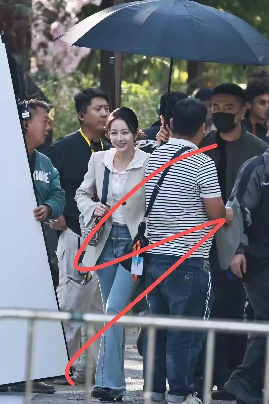 张天爱跟素人合影,胯真的好宽,大宅院似的