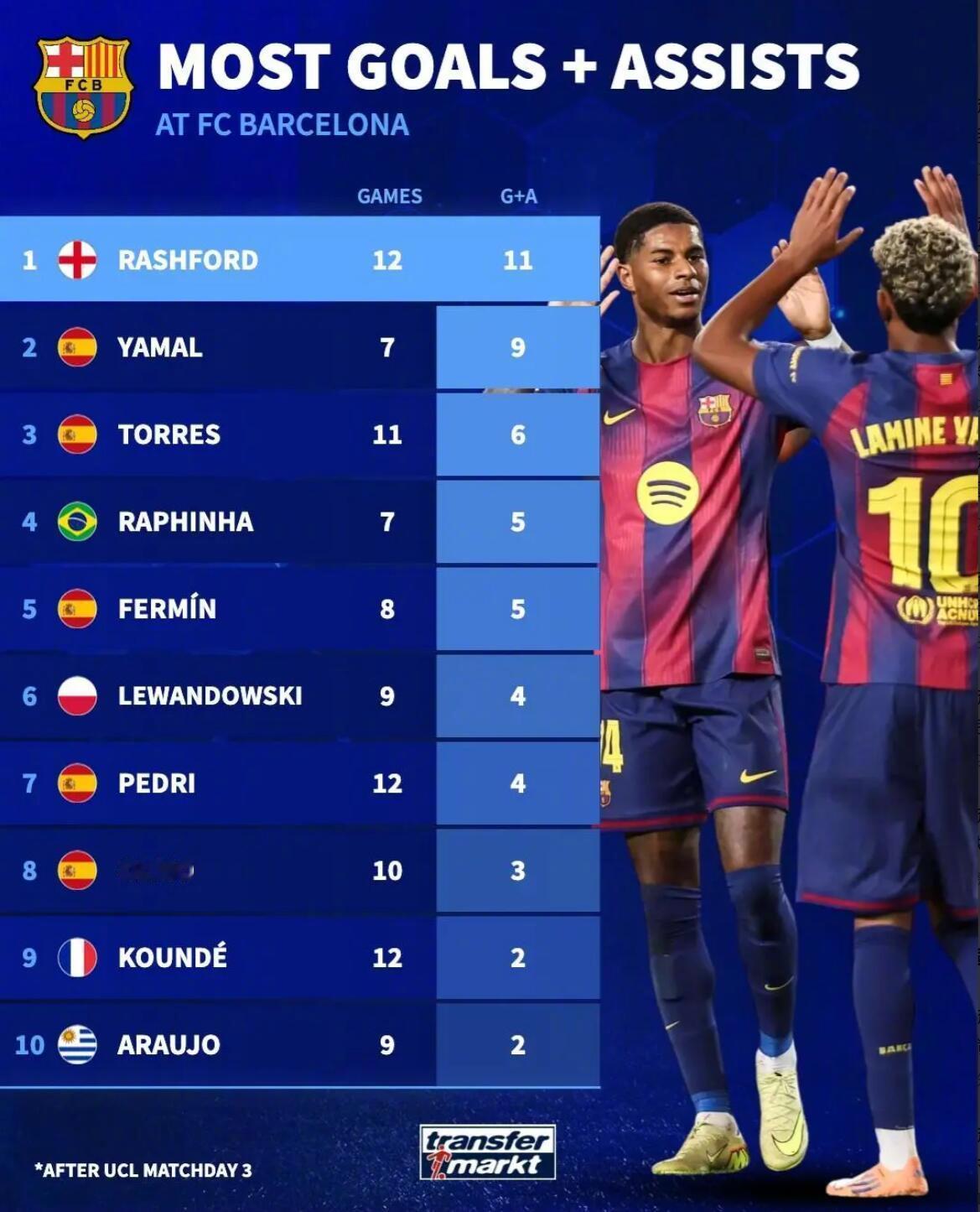足坛短讯! ★长舒一口气! 压力山大的利物浦新援维尔茨,新赛季至今0球0助攻,欧冠对德甲的法兰克福,他终于贡献了2次助攻,打开进球贡献账户! ★拉什福德现在成了巴萨的第一前锋! ★自20/21赛季开始以来,加布里埃尔是五大联赛各项赛事为单一球队进球最多的中卫球员:22球。 ★凯恩本赛季在拜仁12场各项赛事中已攻入20球,这比梅西和C罗俱乐部生涯中从赛季初开始打入20球的速度还要快。 ★欧冠现在有5支球队3战3胜,五大联赛各有一支,不过下一轮欧冠有4支要进行强强对话:利物浦主场迎战皇马,巴黎主场对阵拜仁。 ★19岁切尔西前锋吉乌首开纪录,成为队史最年轻的欧冠进球者。 但33分钟后,18岁的埃斯特旺破门,抢走了吉乌的纪录。随后,比吉乌小一个月的乔治也进球了,吉乌只能成为队史第3年轻的欧冠进球者了。 ★德甲球队欧冠最大比分失利榜! 勒沃库森3次惨败上榜。
