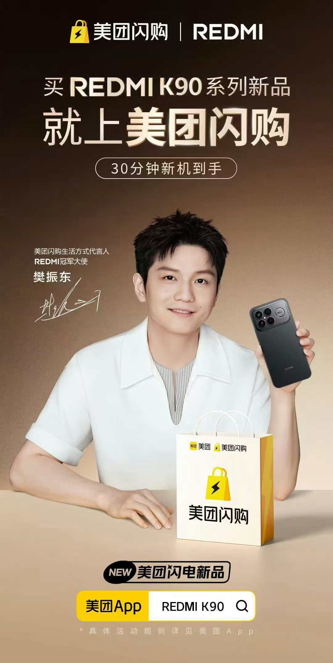 买REDMI K90就上美团闪购美团闪电新品 东哥用“美团闪购生活方式代言人”和“红米K90冠军大使”的双重身份,直接锁定了我的消费选择!这波跟定你了30分钟新机到手!