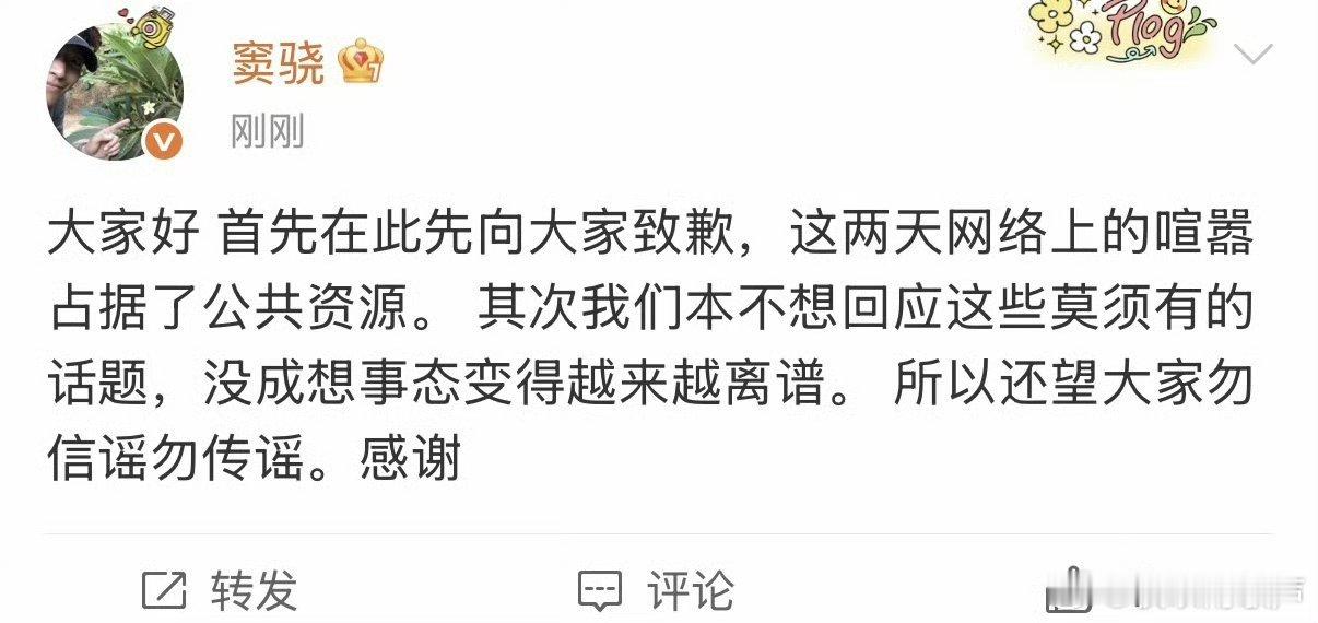 窦骁何超莲辟谣婚变两个人幸福就好大家还是不要信谣言了,专注自己生活吧,别总盯着别人的家事窦骁何超莲回应婚变传闻 ​​​