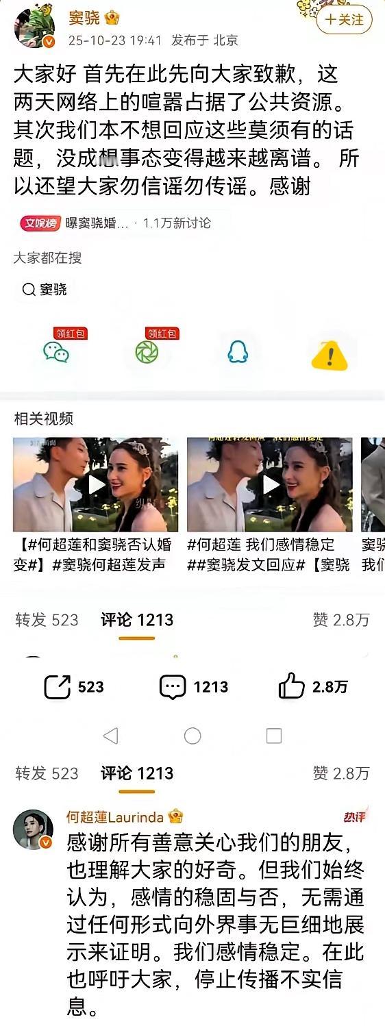 窦骁何超莲:感情稳定,静候佳音 迟来的道歉,主角竟是窦骁,何超莲紧随其后致谢,这波操作着实让人意外。原来两人今日同在北京,感情稳定得超乎大家想象,看来之前的种种猜测都成了无稽之谈。此前,小两口都忙于事业,无暇过多回应外界。 何超莲十分贴心,她理解大家对他们感情的好奇,毕竟两人名气不小,受关注在所难免。但她也强调,感情是两人的私事,无需向外界证明。如今网传两人积极备孕,超莲更是曾承诺希望“足球队”早日到来,满满的期待溢于言表。 不得不说,窦骁对何超莲爱意满满,能随时随地照顾她的情绪,这样的男人实属难得。即便两人分开,何超莲也未必能找到更好的。所谓三太舍不得女儿、考验窦骁,不过是感情路上的小插曲。相信不久之后,我们就能听到他们爱情结晶的好消息,一起静候这份甜蜜吧。
