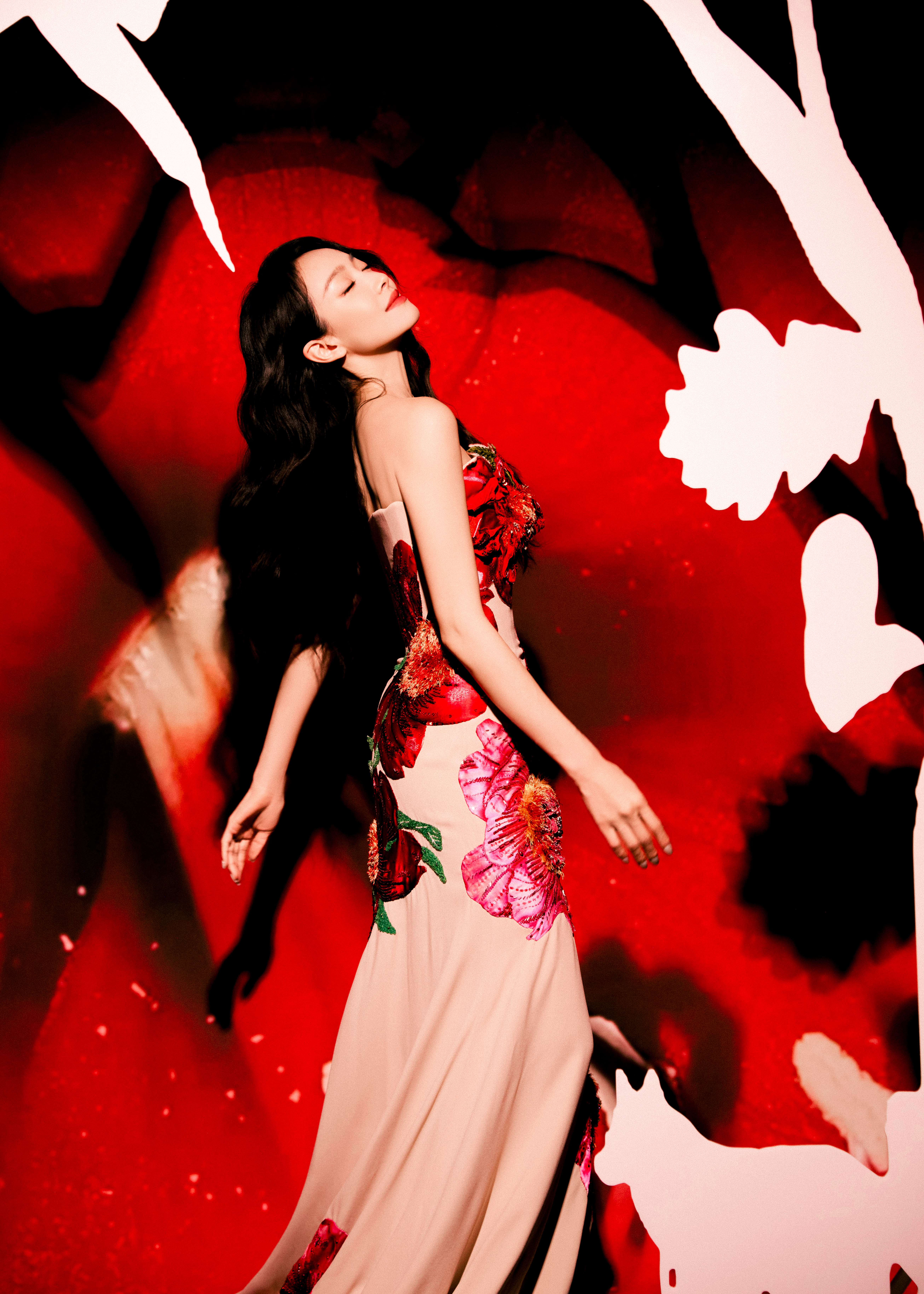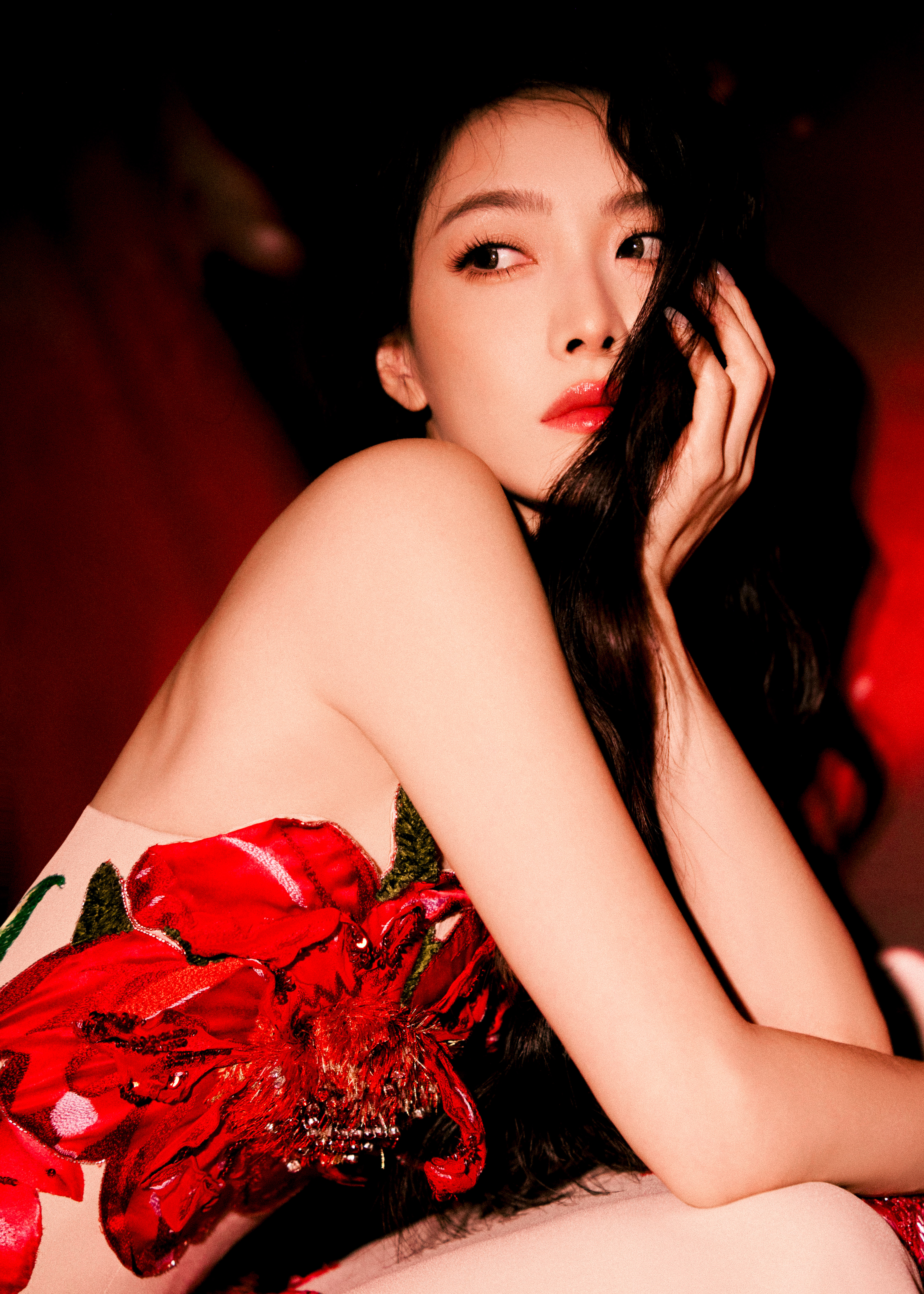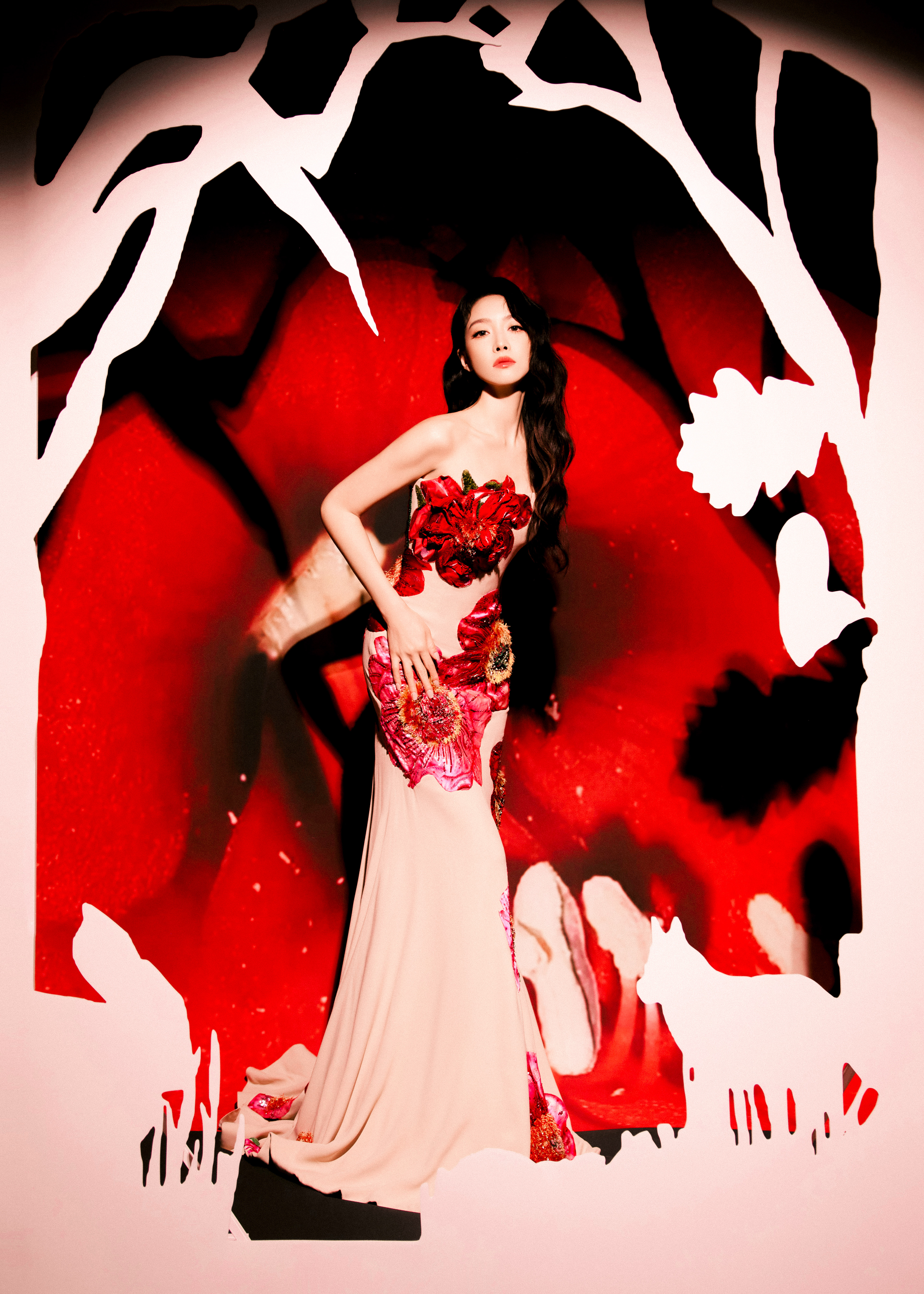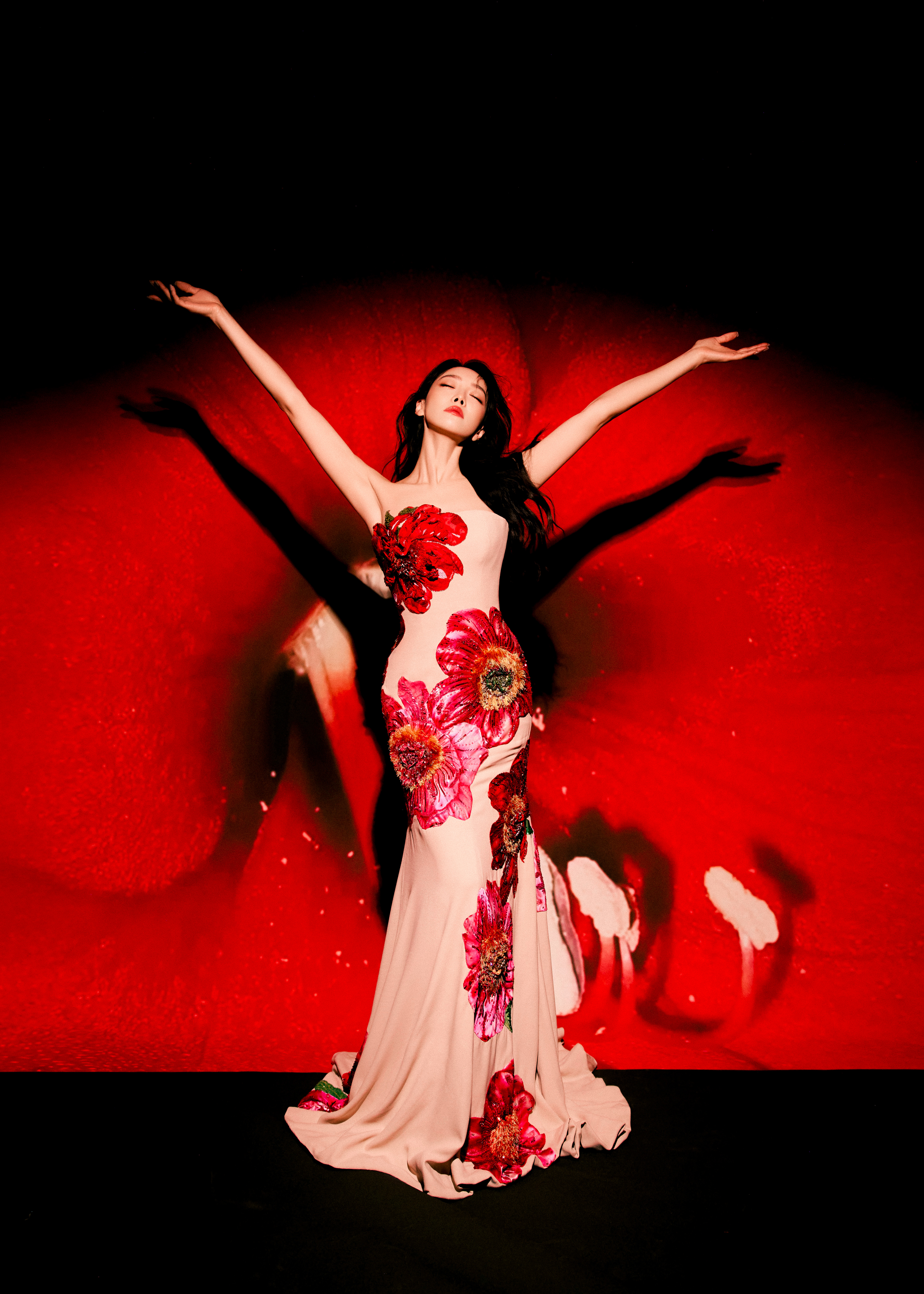 红焰为幕,繁花作裳,宋茜以姿态裁碎夜的沉寂,每一寸舒展都是生命绽放的形状。宋茜强曝光镜头下的五官双宋合体
