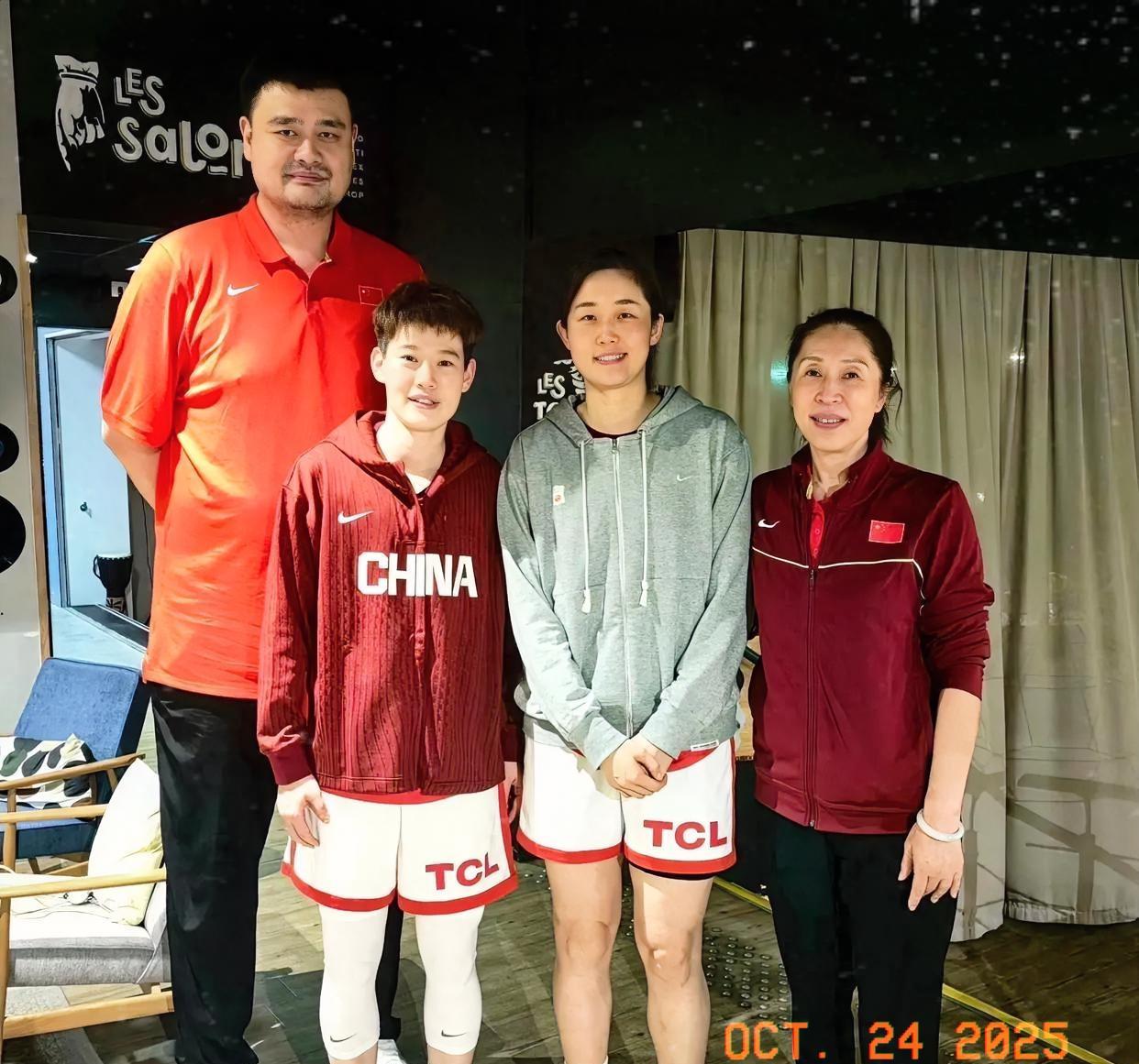 篮球人的相聚,郑薇、潘臻琦和姚明等人,在一起的友情合影。