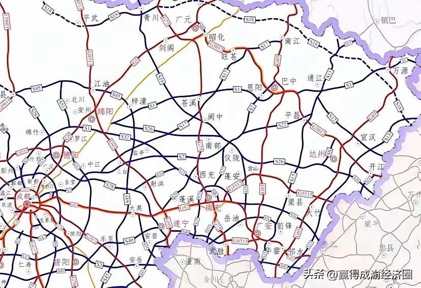 南三高速、镇广高速、青剑阆仪营高速,城宣大邻高速作为完善川东北区域交通网络线路,