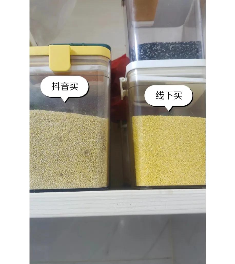 这差距也太直观了吧? 左边抖音买的“山西小米”,颗粒发灰还混着黑点;右边商超买的,黄亮得晃眼这一对比,谁好谁坏肉眼就能看出来。 线上买杂粮总踩这坑:宣传图里粒粒饱满,到手要么颜色不对,要么混着陈货。线下虽然贵点,但能摸能看,至少新鲜度有谱。 你们线上买食材时,遇过这种“货不对板”的情况吗?