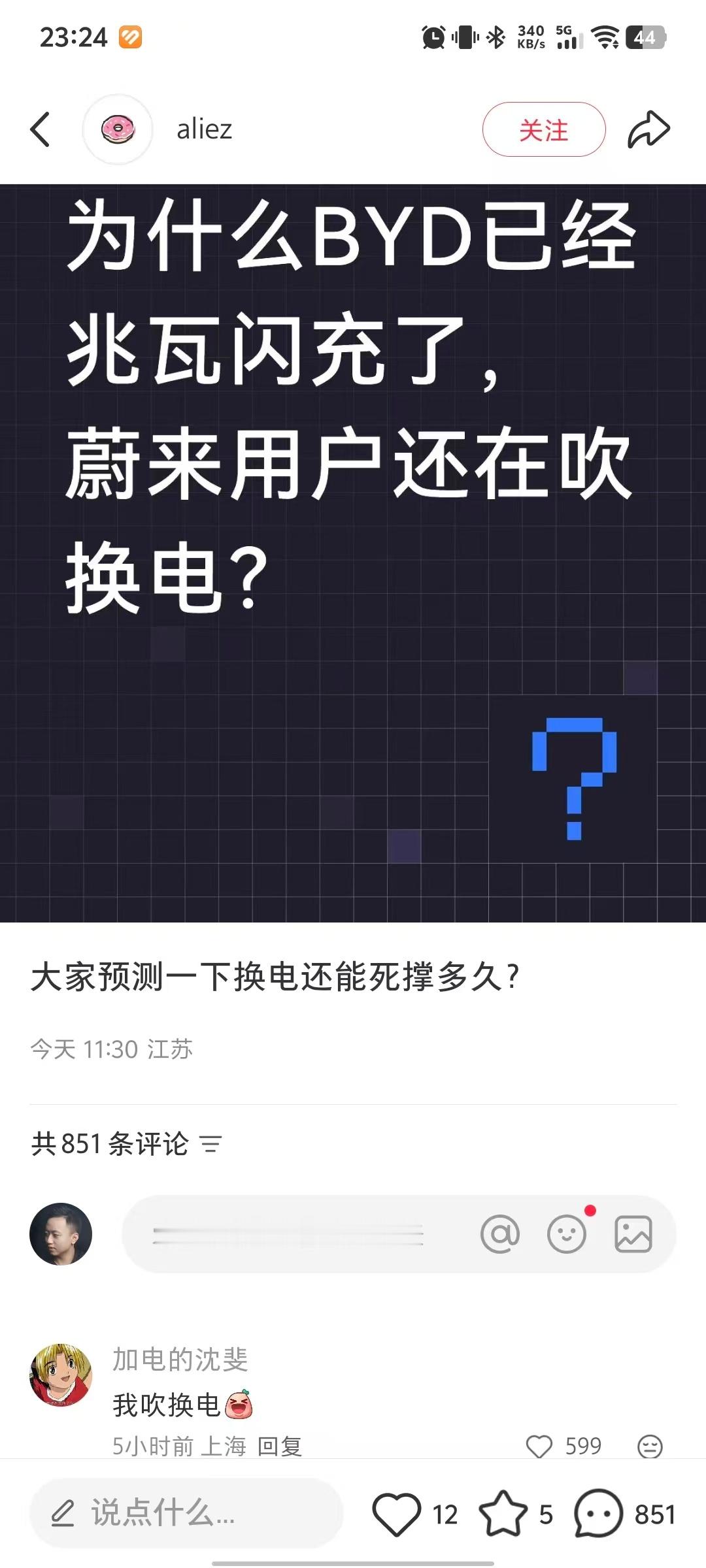 笑死了🤣,沈博高强度冲浪,直接跑到黑水那边去留言,当面打脸。其实我觉得原文的问题有逻辑漏洞,最大的漏洞,就是为什么都有兆瓦闪充了,蔚来用户依然在强烈喜欢和推荐换电呢?答案就是充电体验不行啊,哈哈哈哈大v聊车蔚来汽车[超话]