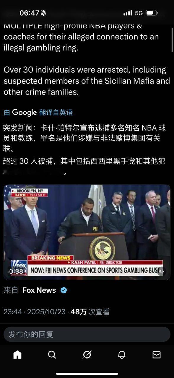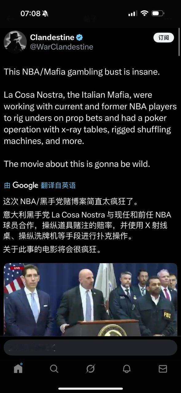 逮捕了一个与黑手党有关的赌博集团,其中有NBA球员与教练。