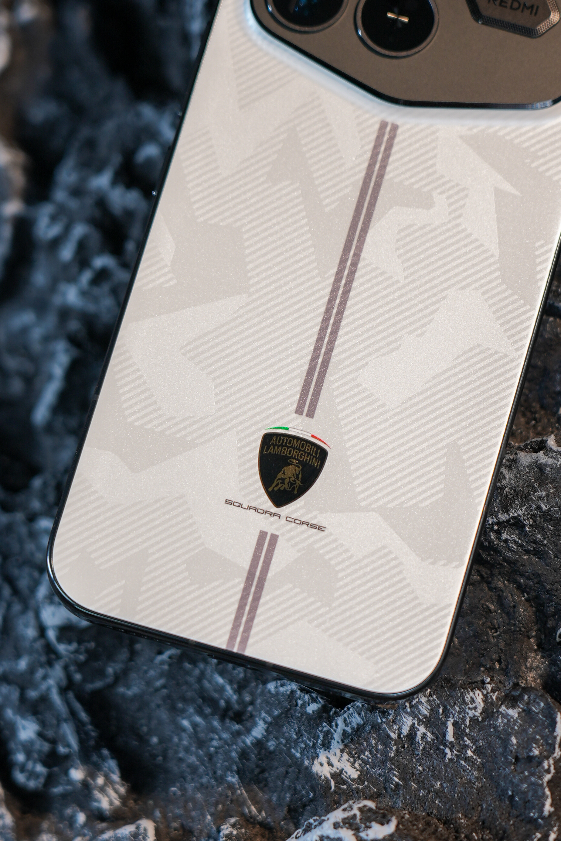 REDMI 和兰博基尼 SQUADRA CORSE 联手的 K90 Pro Max 冠军版很有赛道范儿。白色机身搭配凌厉的Y型贯穿腰线,加上标志性的盾牌 LOGO,镜头 Deco 还去掉多余标识显的更整洁,系统内还有专属定制主题。K90ProMax冠军版