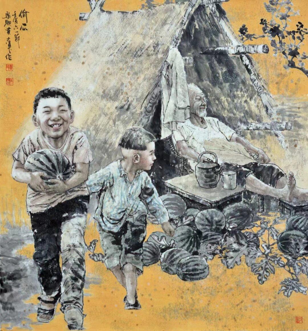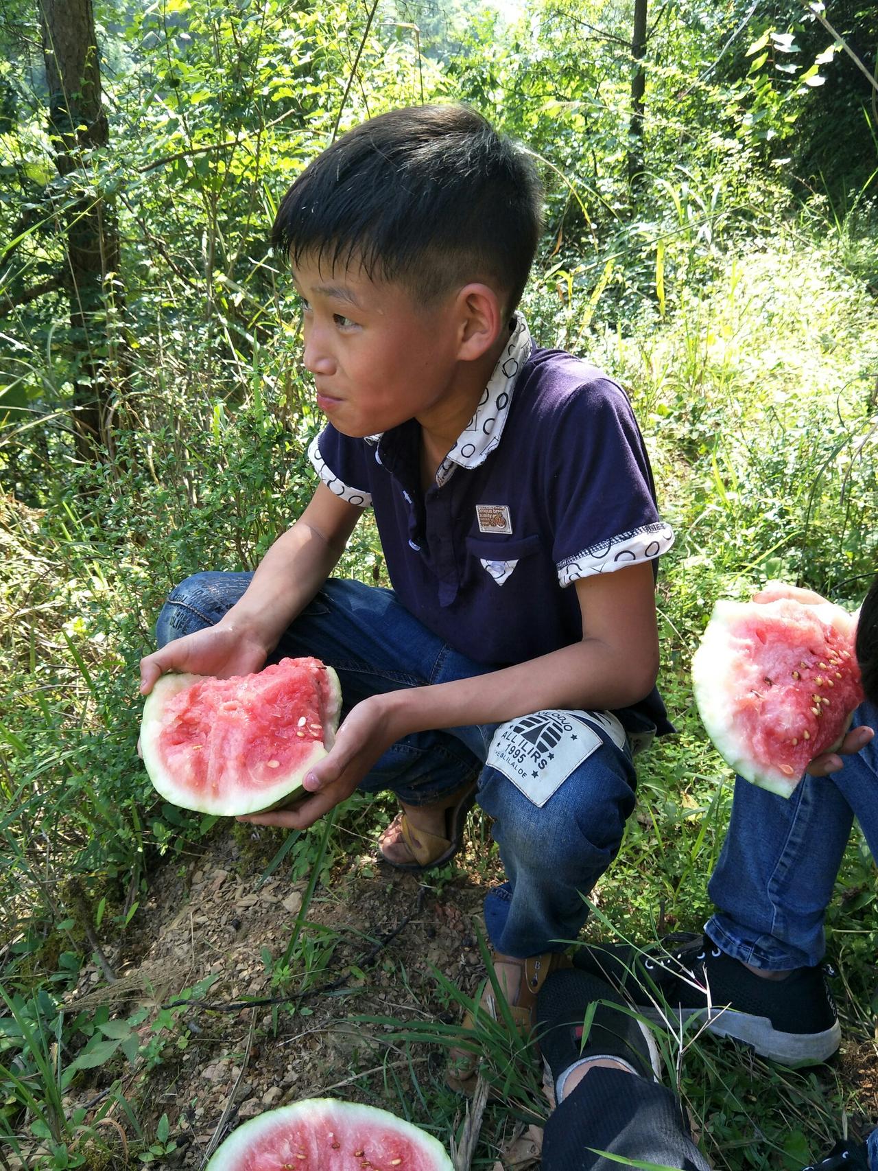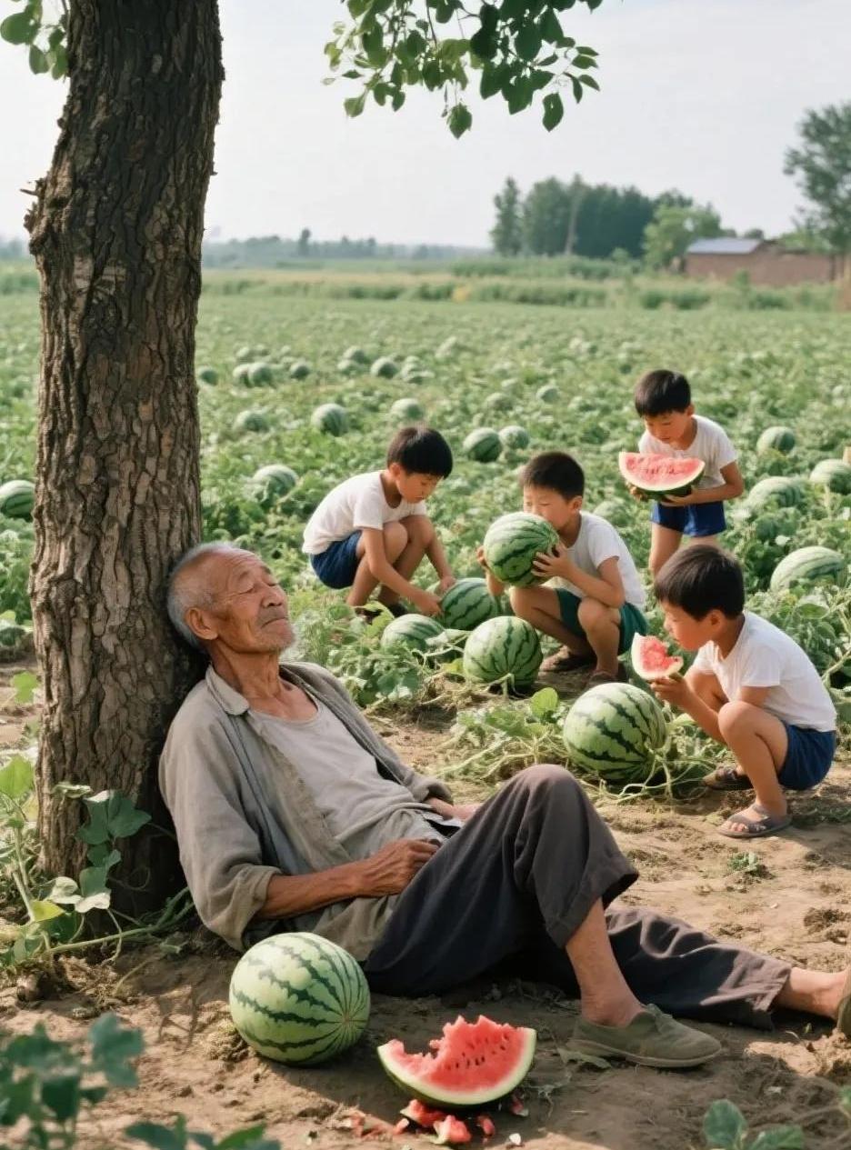 要说六零后小时候没有偷过瓜摘过枣,那他一定是一个“好孩子”,偷过瓜摘过枣也不一定是“坏孩子”,不过人家多数没有被逮住过,也没有受到惩罚,我小时候也算一个好孩子,很少跟着那些“坏孩子”干这个事去,去了一次还被逮住了。 小时候,都是生产队种西瓜,也不是每个生产队都种,种西瓜那是一个技术活,我们村有十几生产队,也就有几个生产队种,到了夏天,西瓜熟了的时候,也是偷瓜的时候,其实,没熟的时候,就开始偷瓜,那个时候,不叫偷瓜,叫“扒瓜”。 西瓜快要熟的时候,都会有看瓜园的,电影电视里都是老头儿看瓜园,那是演的,多数的时候是年轻人,有一次我们摸准消息,那几天队上几个年轻人民兵训练去了,这几天是文革他爷看瓜园,文革他爷都六十多了,耳朵还背,于是我们七八小孩中午吃完饭,就约好在村边大坑里集合,七八个八九岁“坏孩子”一本正经的集合在大坑背阴的土坡上,开了一个小黑会,做好分工,从哪里进入,不能惊动文革他爷,被发现后,从哪里撤退,完全跟着电影学。我们先从棒子地过去,然后钻入紧挨西瓜地谷子地,我们趴在谷子地里一点一点向西瓜地隐蔽前进,没有人说话,小心翼翼,生怕暴露了目标而失去这次绝好的机会,到了西瓜地边,瓜棚外边果然没人,文革他爷一定是睡着了,真的是好机会,于是我们一涌而出,挑着那绿皮花纹大西瓜,但是我们太高估了自己力量,那个时候西瓜都个大,大的有二十多斤,小的也有十几斤,人小搬不动,就从瓜园把西瓜滚进谷子地里,五六个大西瓜被我们滚进谷子地深处,又累又害怕,浑身都湿漉漉的,我们先躺在谷子地呼哧了半天,才开始吃瓜,但是,没有刀啊,我们就学电影《小兵张嘎》胖翻译官吃西瓜,用拳头砸,可是我们小,拳头小,力量小,西瓜偷来了,可是打不开,用脑袋砸,小黑子的脑袋碰的生疼,还是没砸开,找瓦片,找砖头,地里找砖头找瓦片简直比找金元宝都难,最后好不容易从很远地头找回一个瓦片,就在我们刚刚用瓦片打开西瓜的时候,还没来的及欢呼,也没来得急吃,突然,我们发现被包围了,两个大人把我们包围了,说是大人吧,就是文革他哥还有黑四他小叔,两个人二十岁,哎呀,看瓜的不是文革他爷吗,怎么换了人了,我们几个人都用胆怯疑惑的眼光看着文革,傻愣愣呆坐在那里,原先计划好怎么逃跑,愣是谁也没敢动,“好啊,你们偷西瓜”“抱着西瓜到大队去”,这个时候我们吓的都要哭了,谁也不敢动,再说我们也抱不动啊,“不动啊,怎么不动啊”,我们当中真的有人哭了,“别咧咧,再咧咧,歇你们”,“偷瓜,偷了瓜,就得吃了,吃不完不行”,“吃,不吃就送你们到大队去”,于是我们在威胁胁迫之下,开始吃西瓜,怎么也吃不出西瓜的甜味来,一个大西瓜连吃带糟蹋,吃完了,黑四他小叔,外号叫大鼻涕,用手里的西瓜刀,唰的一声又切开了一个二十多斤的大西瓜,并且都给切成条,命令我们“吃,继续吃”,我们这个时候,那种刚开始被抓住的胆颤已经开始慢慢减弱,虽然两个人是民兵,但毕竟都是亲戚,一个是文革亲哥,一个是黑四亲叔,其他“坏孩子”也都沾亲带故,这个时候虽然是被强迫吃西瓜,还是吃出西瓜的香甜,吃完半个后,我们吃瓜速度变慢了,每个人小肚子都是滚瓜溜圆了,到最后,我们实在吃不动了,最后黑四哭着“小叔,我实在吃不动了”“不行,吃不完,送大队去”,这种恐吓再一次发挥了作用,我们几个“坏孩子”都被下哭了,“吃不了,还偷这么多”滚蛋“,滚蛋就滚蛋,我们立刻像遇到大赦一般,一哄而散,也不管踩倒了谷子,其实,我们已经为偷瓜糟蹋了一片谷子。 这是我唯一的一次偷西瓜,也是最后一次。长大后,才明白大鼻涕两人也是吓唬我们。在那个年代,被送到大队,那是很严重的问题。