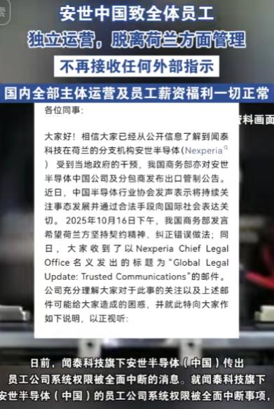 荷兰那边在看到安世中国宣布:给中国员工正常发放工资,不许接受荷兰那边管理后,他们立马宣布:他们会给中国这边的员工正常发放工资的。 2025 年 10 月,安世半导体出了个事儿:荷兰总部先是说要停发中国员工的工资,结果没几天就改口了,说工资照常发,之前是 “误会”。 这前后反差这么大,到底是咋回事? 咱们先说说荷兰为啥敢一开始就硬气。 早在 9 月底,荷兰政府直接把安世半导体给 “管起来了”—— 冻结了安世全球 30 家公司的钱和专利,把中国籍的 CEO 也给免了,还把股权交给荷兰本地公司代管。 荷兰说这是为了 “国家安全”,其实是美国在背后逼的:美国之前把安世的中国母公司闻泰科技列了清单,还威胁荷兰,要是安世不听美国的,就不让安世的产品进美国市场。 荷兰怕得罪美国,就照着做了,甚至还要求安世中国停发员工工资,想靠这招逼中国这边服软。 可荷兰没算到,安世中国根本不怕。 首先,中国员工的工资本来就不用荷兰管。 安世中国自己赚钱不少,2024 年营收超 10 亿欧元,净利润快 2 亿欧元。 东莞工厂一线员工一个月能拿 4800 到 6500 块,技术岗能拿 8000 到 15000 块,还有季度奖金,这些钱都是中国区自己赚的,不用荷兰拨款。 其次,供应链也没卡脖子:安世中国的晶圆从华虹、中芯这些国内企业买,封装材料也是国内的,就算荷兰切断了系统权限,东莞工厂该生产还是生产,甚至还接了比亚迪 10 亿颗芯片的新订单。 所以面对荷兰的停薪要求,安世中国直接硬刚,发了个声明说:“工资肯定按时发,荷兰的不合理要求我们不听!” 员工一看有保障,该上班上班,工厂一点没受影响。 真正让荷兰扛不住的,是欧洲车企慌了。 安世中国生产的芯片,68% 都卖给欧洲,像大众、宝马的电动车,很多芯片都是安世中国供的。 后来中国出了个政策:安世中国的芯片要卖到欧洲,得先申请许可证,至少 20 天才能批下来。 这一下欧洲车企就慌了 —— 库存的芯片最多撑 15 天,再断供生产线就得停。 德国大众、宝马都开始减产,德国汽车协会直接找欧盟告状,骂荷兰瞎搞破坏供应链,说再这样下去,欧洲汽车业每个月得亏 45 亿欧元。 荷兰一看,不仅没逼服安世中国,还把欧洲车企得罪了,只能赶紧改口:“中国员工工资照常发,之前说停薪是误会!” 还说要跟中国沟通解决问题。 其实之前也有过类似的事:美国逼德国不让中资买当地一家芯片公司,德国听了美国的,结果那家公司研发停了,欧洲自己反而更缺芯片设备了。 现在的情况是,安世中国员工工资按时到账,工厂正常生产。 欧洲车企开始找中国其他芯片公司合作,比如大众跟斯达半导体签了 3 年合同;荷兰还在等着跟中国谈。 有网友表示,荷兰这次确实有点冒失,拿员工薪资当博弈点不太合适。 不过反过来也能看出来,现在中国企业的抗风险能力确实强了,供应链没断、产能也稳,加上欧洲车企依赖度高,荷兰最后改口也在情理之中。” 也有网友表示,“感觉荷兰多少是受了美国影响,但没考虑清楚后果,欧洲车企一缺芯就减产,损失实实在在,最后还得找中国这边的芯片厂商合作。 还有之前德国那事儿已经有先例了,跟着外部压力走,最后吃亏的还是自己产业。 安世中国能顶住,主要是自己能盈利、供应链也自主,这对其他中国企业来说,也算是个实际的参考吧。” 说到底,这事就是告诉大家:靠耍政治手段逼企业听话,最后只会坑了自己。 谁手里有真产能、真市场,谁才有话语权,员工的工资也不能随便当筹码耍。 那么到最后,你们怎么看的呢? 如果各位看官老爷们已经选择阅读了此文,麻烦您点一下关注,既方便您进行讨论和分享,又能给带来不一样的参与感,感谢各位看官老爷们的支持!