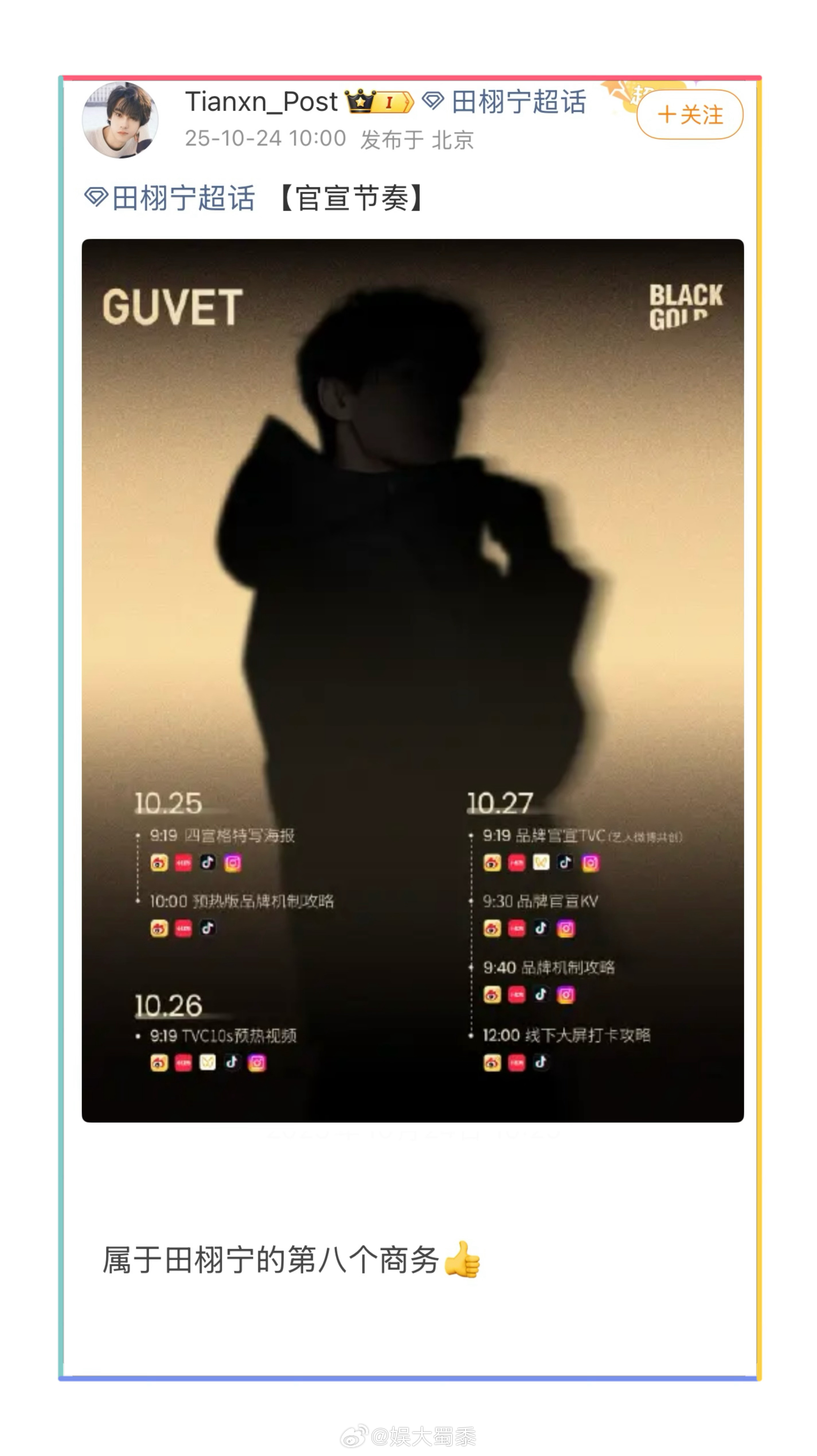 田栩宁商务真的太顶了,属于田栩宁的第八个商务来了!这个商业价值,谁看了不说一声: