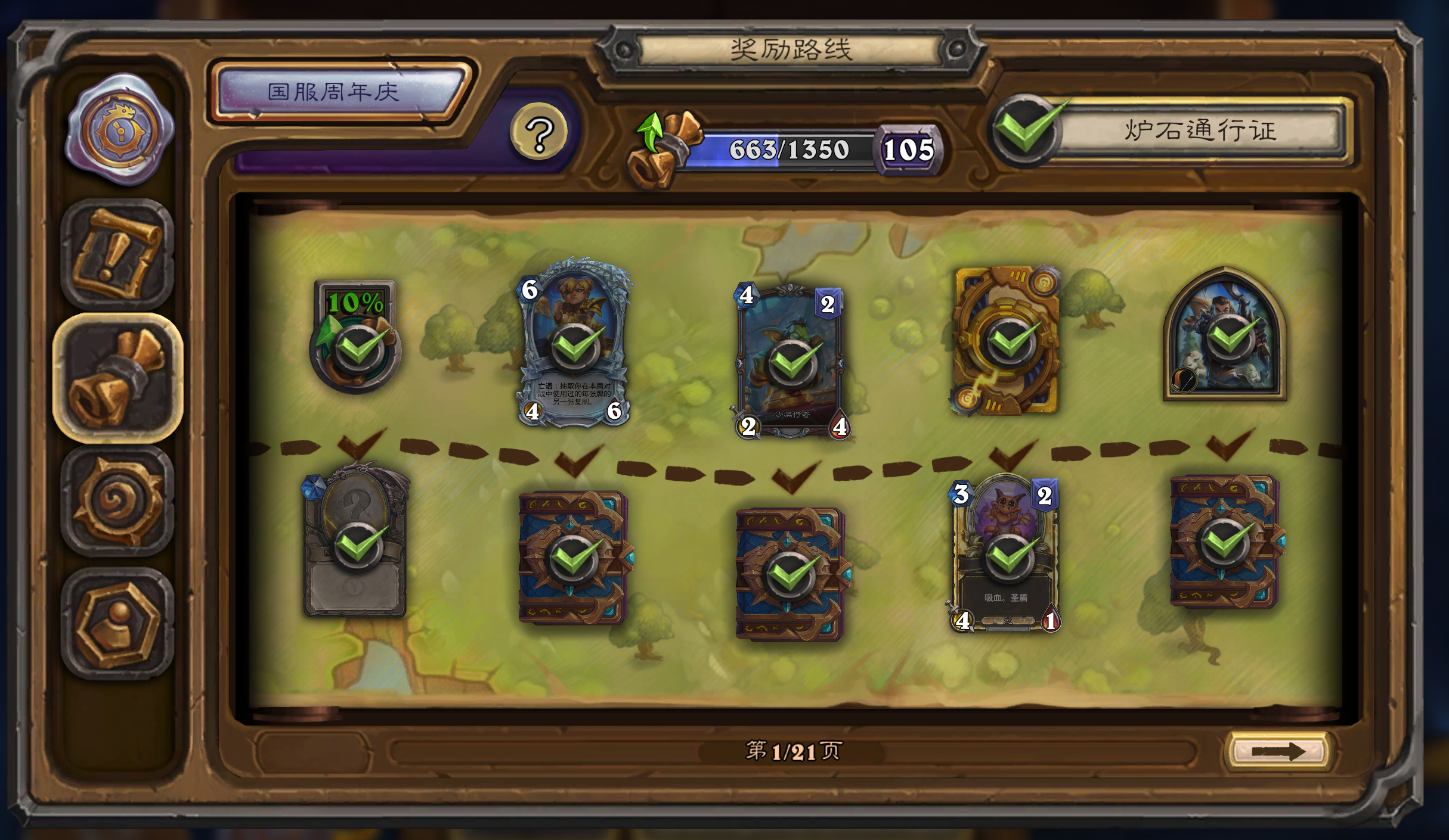 炉石传说 新版本穿越时间流通行证内容预览:普通路线20级送的是时空领主戴欧斯,通行证送的是钻石克罗米、金色时空领主戴欧斯、金色钟表先生,50级皮肤骑士梅卡托克,最终奖励异画碧蓝女王辛达苟萨。