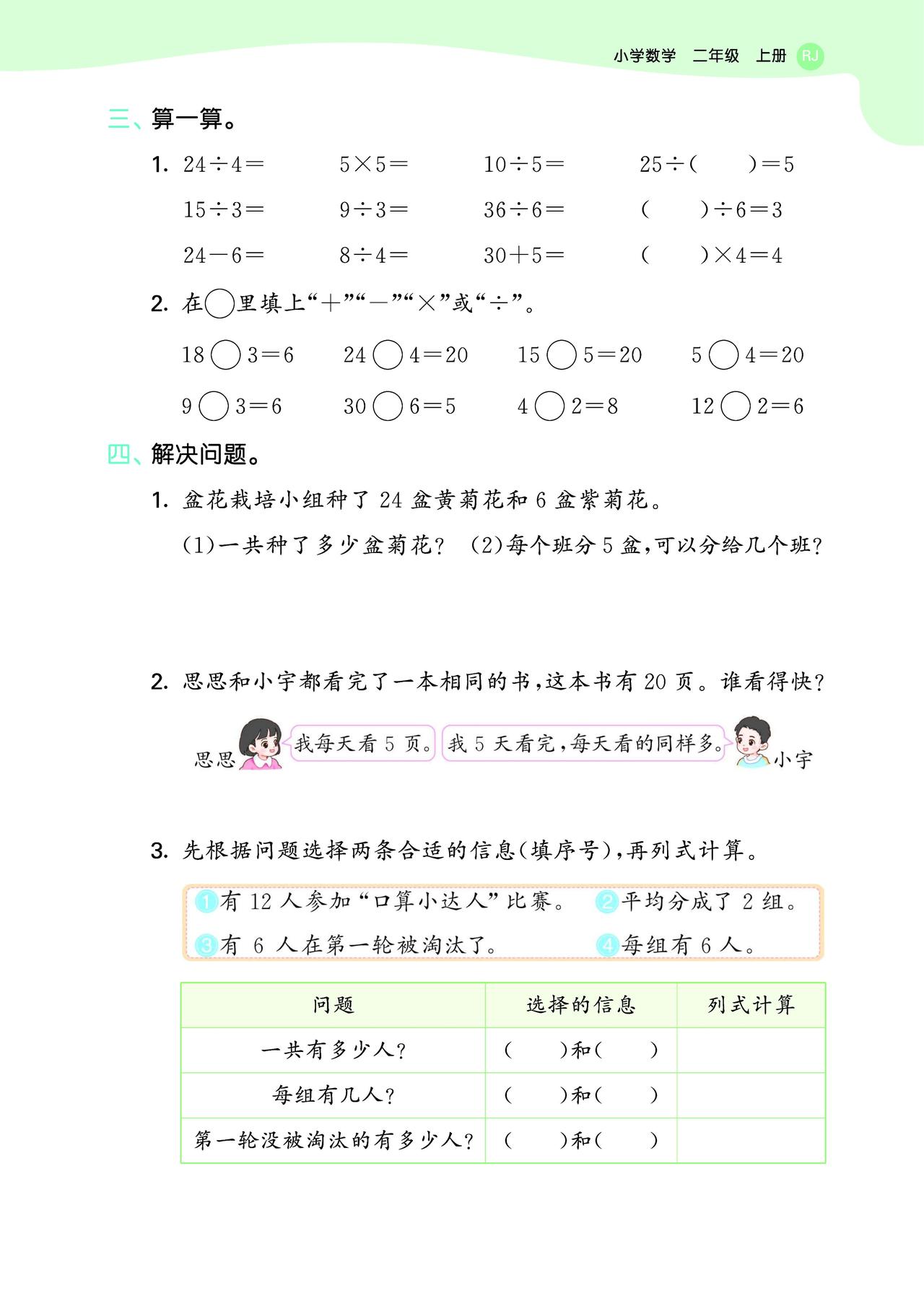 2025秋最新人教版数学二年级上册第三单元素养练习