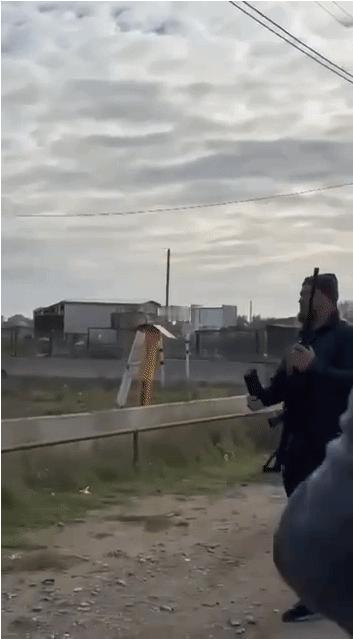 这个俄罗斯人可以吹一辈子了。俄罗斯马哈奇卡拉的街头,当地一个不知名的壮汉,抄着把