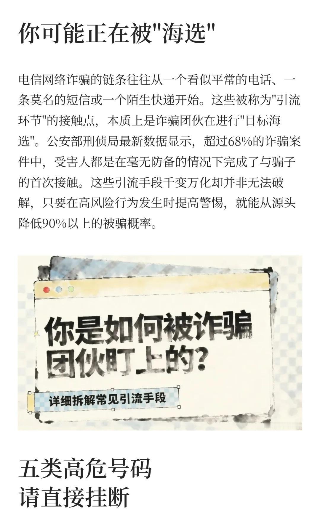 接个电话就中招?公安部刑侦局揭秘电诈引流 电信诈骗防范 反诈指南 网络安全 公安部提醒