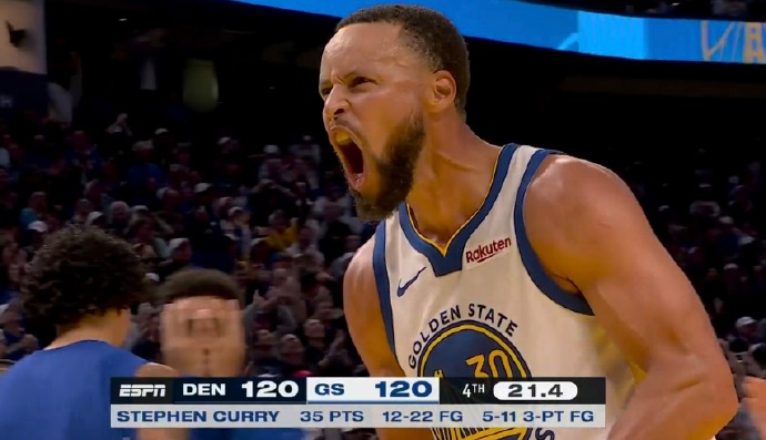 掘金vs勇士 凭借库里的绝平,勇士与掘金拖入加时!!!