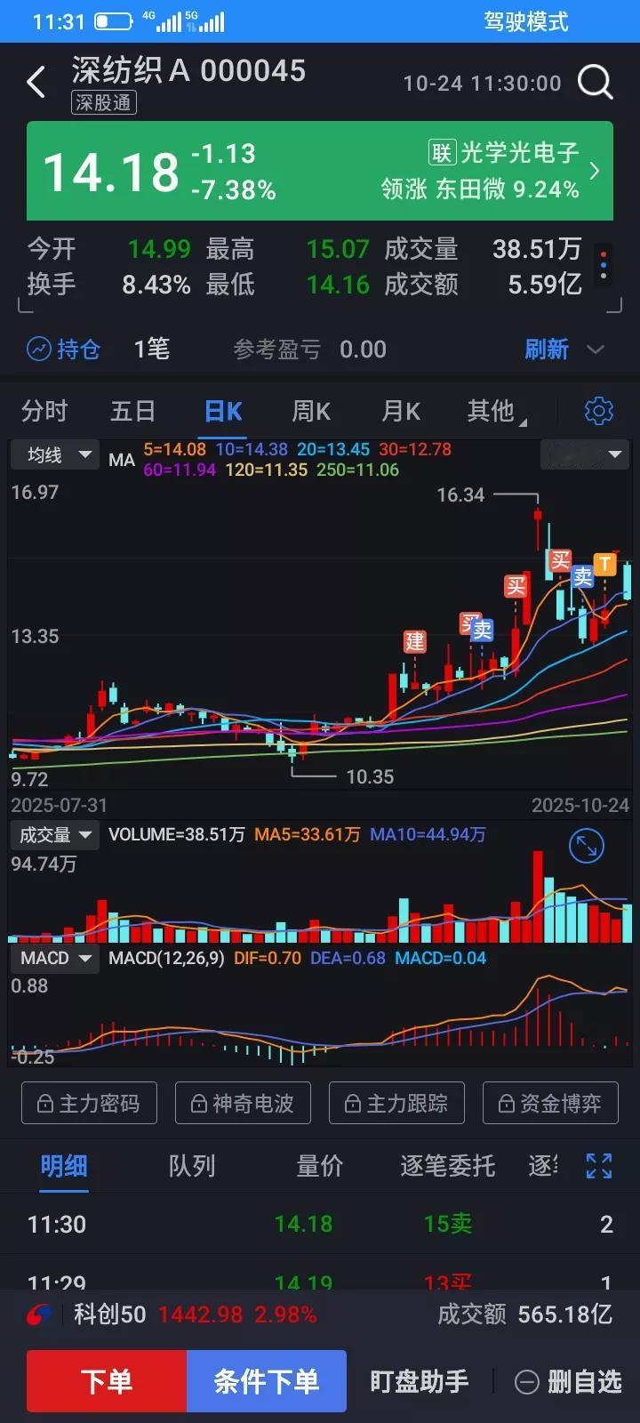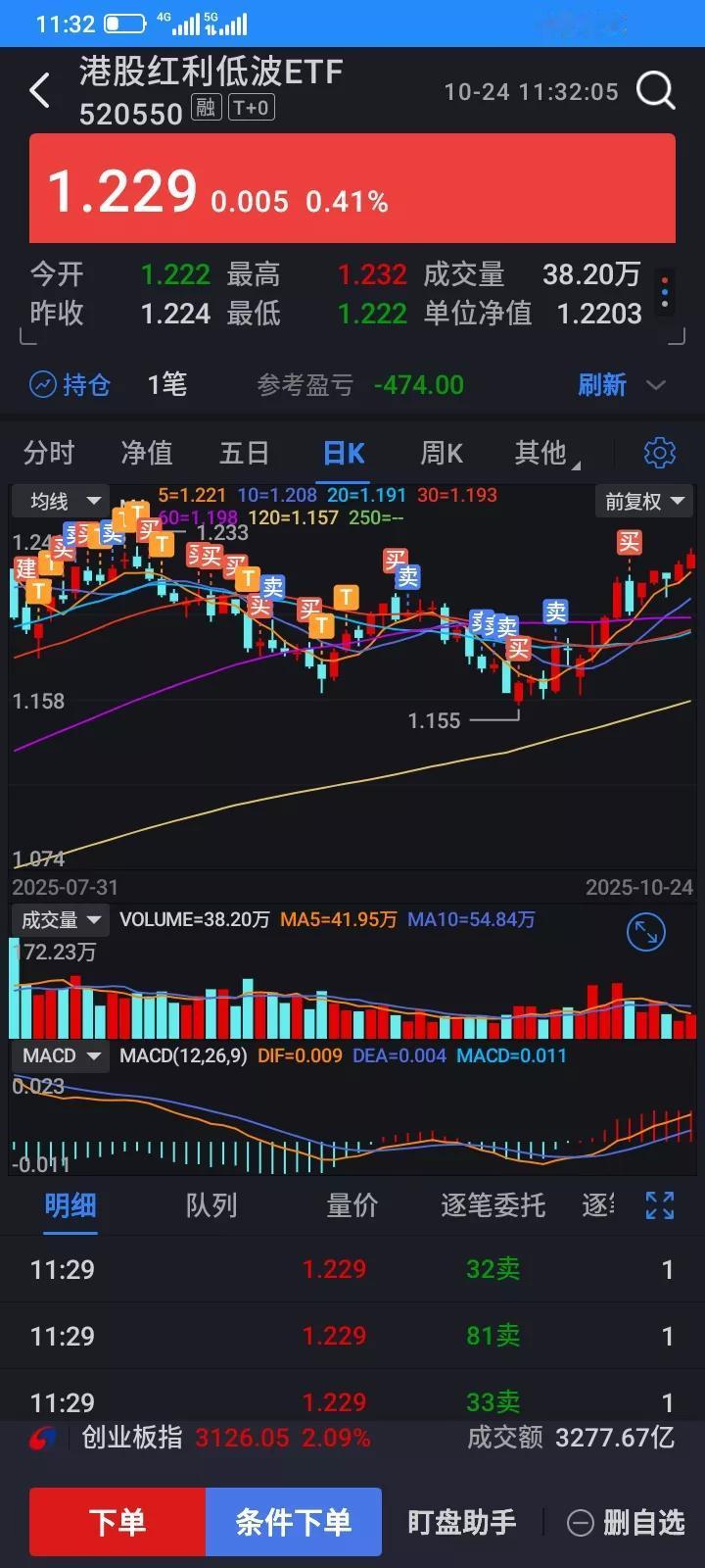 2025.10.24,昨天还在后悔前两天止损错了,昨天早上就涨停,虽然短时间破板,但是还是很快封板,全天强势封住涨停,看起来非常强势,今天怎么也该再上涨一点吧,但是股市常常就是让人大跌眼镜,今天非但没有上涨,还真是低开低走,把打板的套在山顶,还好昨天没有去买入,总是幻想,不能认清现实,早上依然舍不得卖,以为只是短暂的下跌,应该很快会再次涨停,但是事与愿违,一夜之间,公司应该没有什么大的变化吧,上午最低大跌了百分之7点多,赚不到钱,但是不能偷鸡不成蚀把米吧,13.32清仓卖掉了,卖掉之后还反弹了一点点,但是最终还是下跌,就和进入赌场的赌徒一样,只有离开赌桌,留在自己口袋的钱才是自己的,中途赢再多都是浮云,曾经这只股票最多的时候浮盈700多块,今天离场,才剩下100多块,再不离开,可能还要倒亏一点进去。 前段时间不断下跌的红利,下跌中不断止损,现在价格又回到前期高点附近了,但是由于不断止损,钱却回不来了,还依然亏损将近500块。止损不干脆利落,最终大量止损在最低价,该止损的时候舍不得,不该止损的时候却止损了,怎么做都是错。涨停 股票补仓 股票止损策略 补涨策略 板后低吸 股票止损