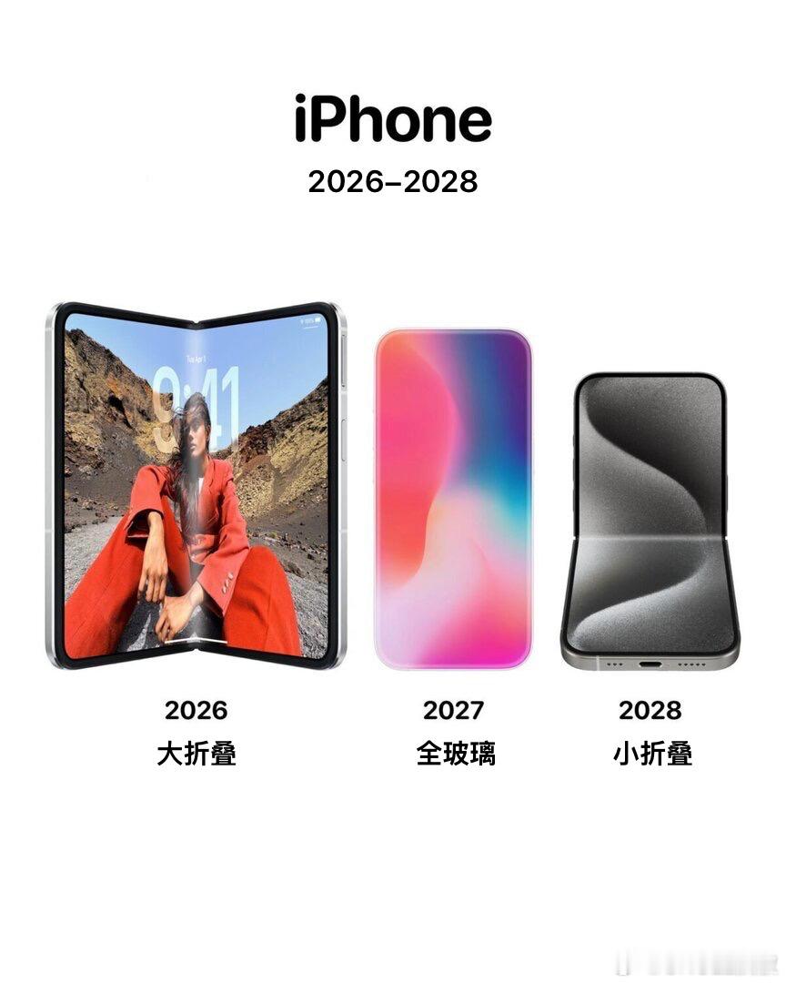 兄弟们好好搞钱吧,因为接下来三年对你的口袋是巨大的挑战,苹果会尝试全新形态的iPhone,每年一款: