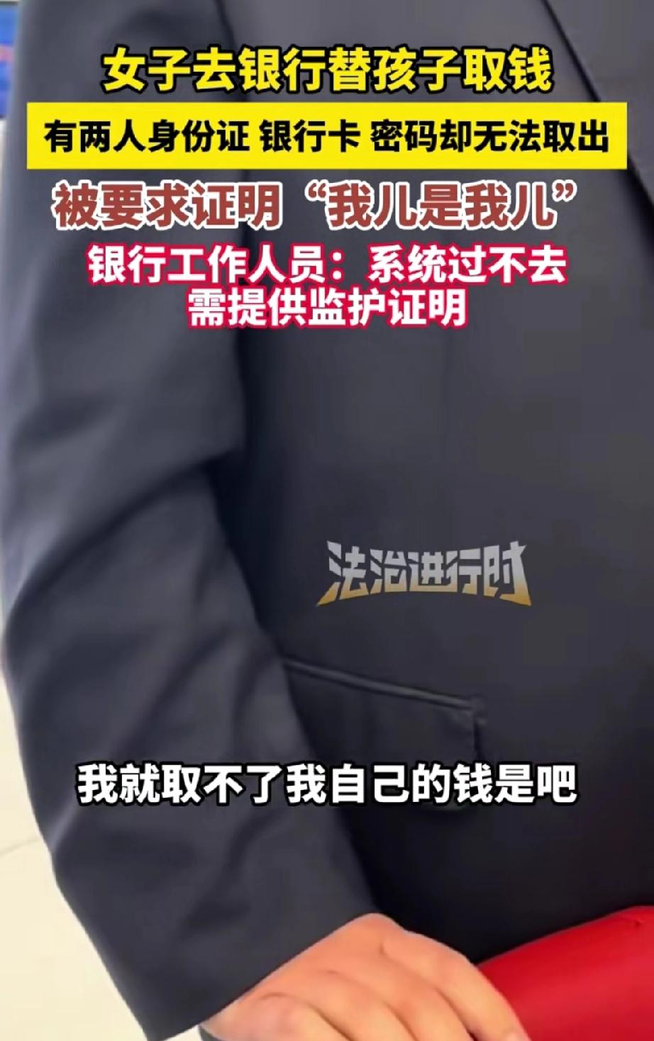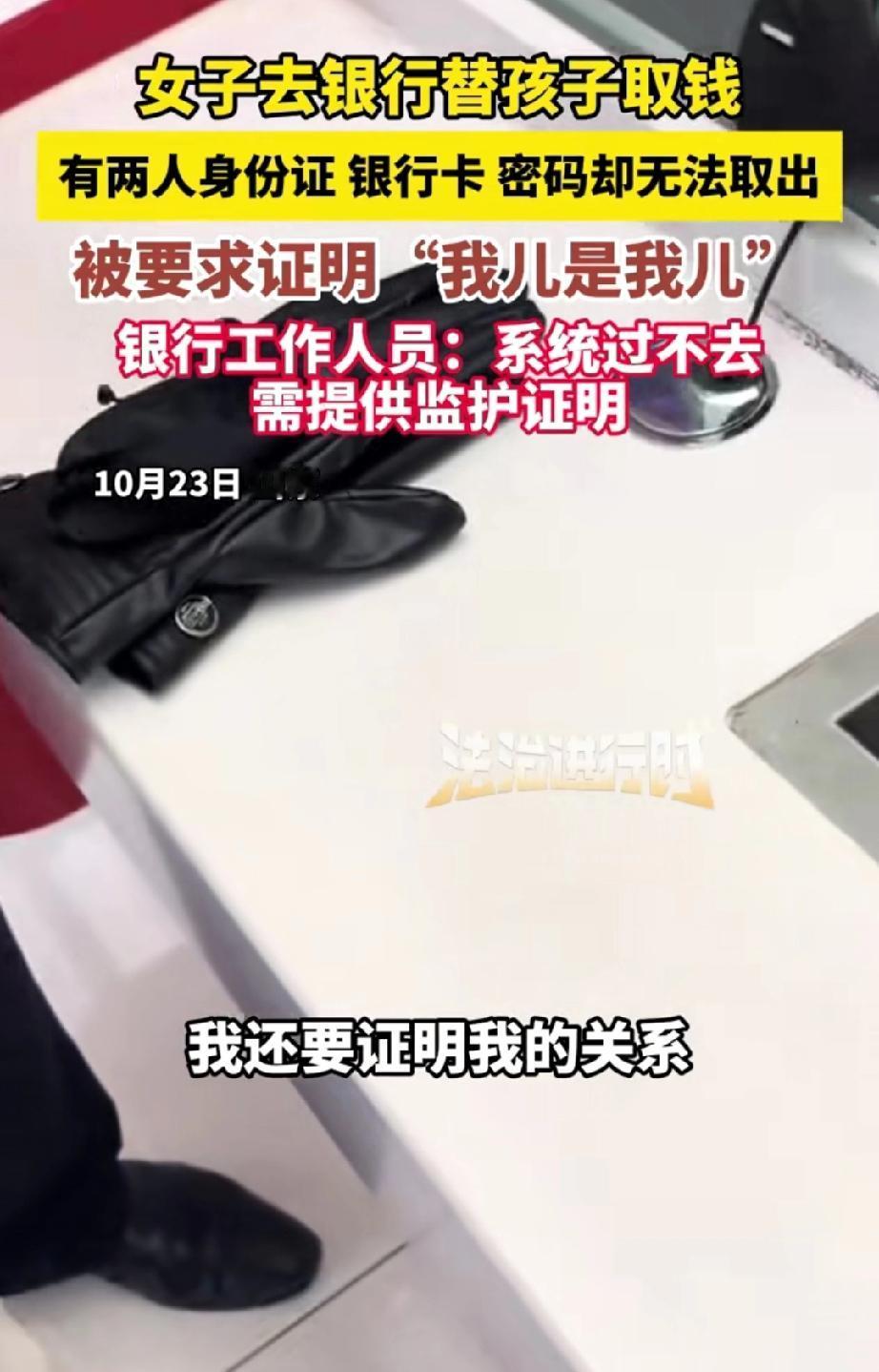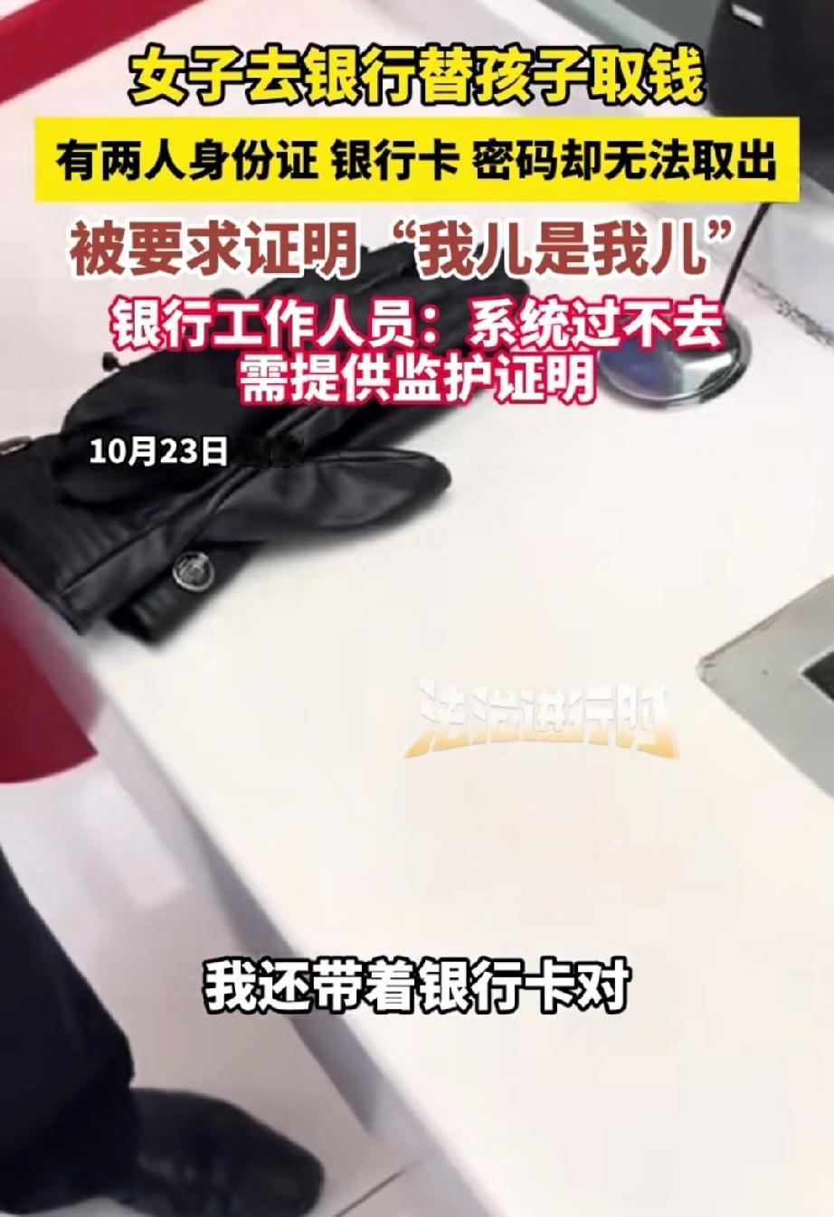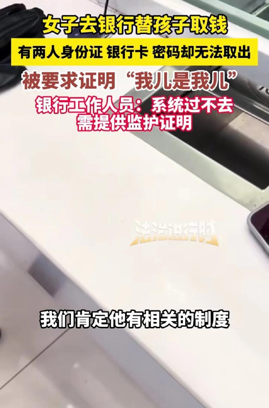 女子替孩子去银行取款,携带着两人的身份证、家庭户口本以及银行卡,且知晓卡密码,却未能取出钱。 银行工作人员告知:“需到户籍地开具一份亲子证明,方可取钱。” 女子顿时气愤不已,说道:“卡里仅一千多元,还让我去开证明,难道户口本还证实不了我和孩子的关系吗?”她觉得银行工作人员在故意刁难她。 工作人员解释称:“电脑系统如此设置,人为无法操作,而且此前出现过问题,所以才有了如今的规定。” 女子依旧不依不饶,继续理论。 网友质疑道:“有银行卡,为何要去柜台取呢?” 我觉得或许卡里还有小面额余额,而女子想把钱全部取出。 女子这般较真,根本无法解决问题。 规定既定,谁的钱归属谁,银行是在为储户把控资金存储安全。理解就好,何必怒气冲冲地争论呢?就因为取钱过程变麻烦了吗?那让孩子自己去取,不就简单了吗? 来源:法治进行时