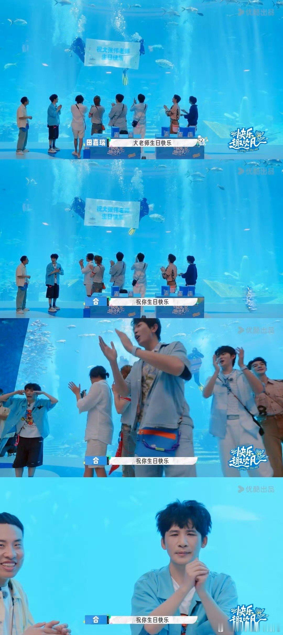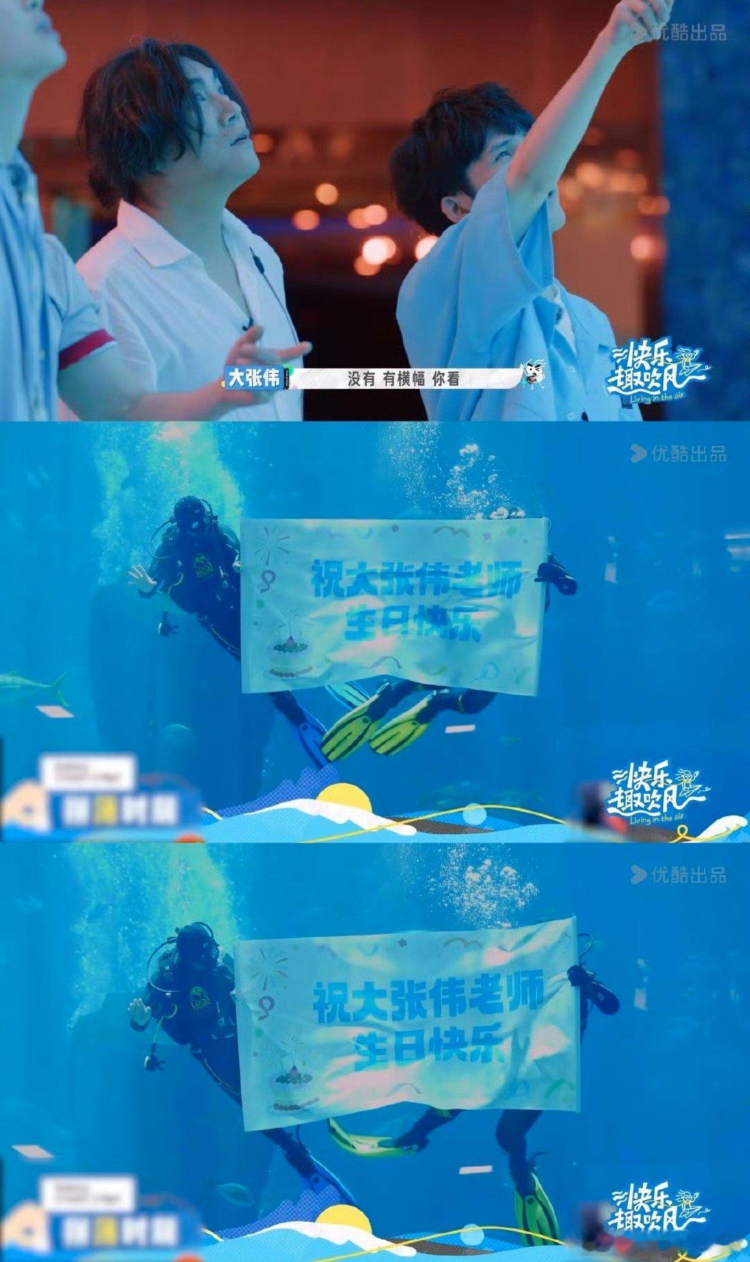 抽风团全员为大张伟庆生快乐趣吹风 抽风团团魂太戳人!众人看美人鱼表演时,潜水员突然登场拉开生日横幅,大张伟从疑惑变惊喜,全员齐喊生日快乐,吵吵闹闹间满是真心。