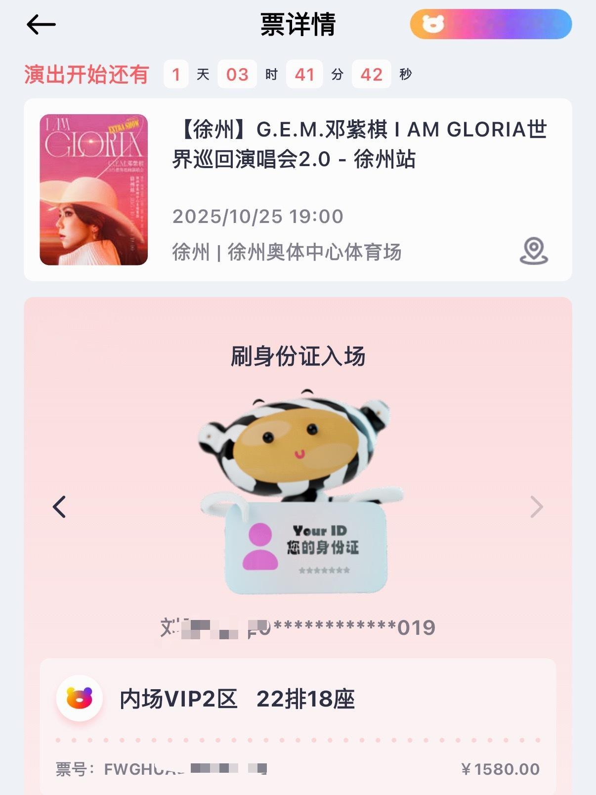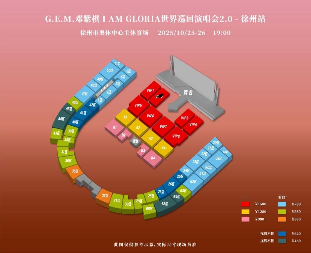 邓紫棋演唱会徐州站座位出来了,内场VIP2区,22排18座,就在延伸台旁边,这个位置怎么样啊[拜托]
