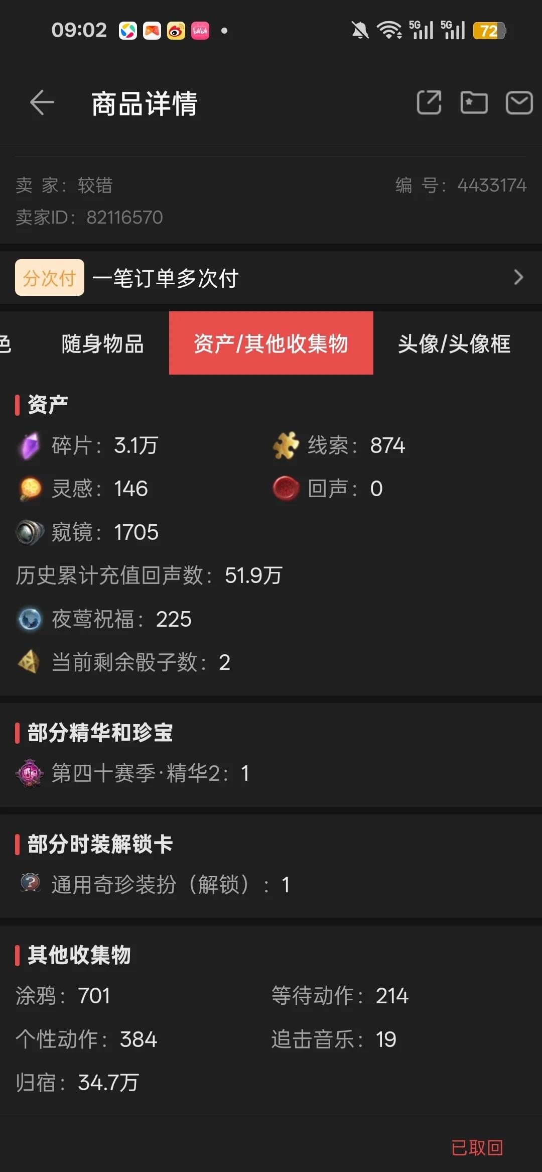 挂多少合适? 如标题,想退游了,主要没时间打,也没精力去玩了,号是18年的,有不少绝版古早金,4个真理之下(DM,绯,真相,加特)归宿装修不错,号内资源丰富,3.3w紫薯(图片是国庆前的,最近又肝了一点),1700+窥镜,45个生日纪念币,体验卡多多,紫皮解锁卡一张,反正挺多东西的,头像框有dy直播框,cc直播框,b站框,双字id较错,历史巅七,ab牌都有,游戏账号 大家帮我看一下 自带价 找个有缘人 不懂就问问