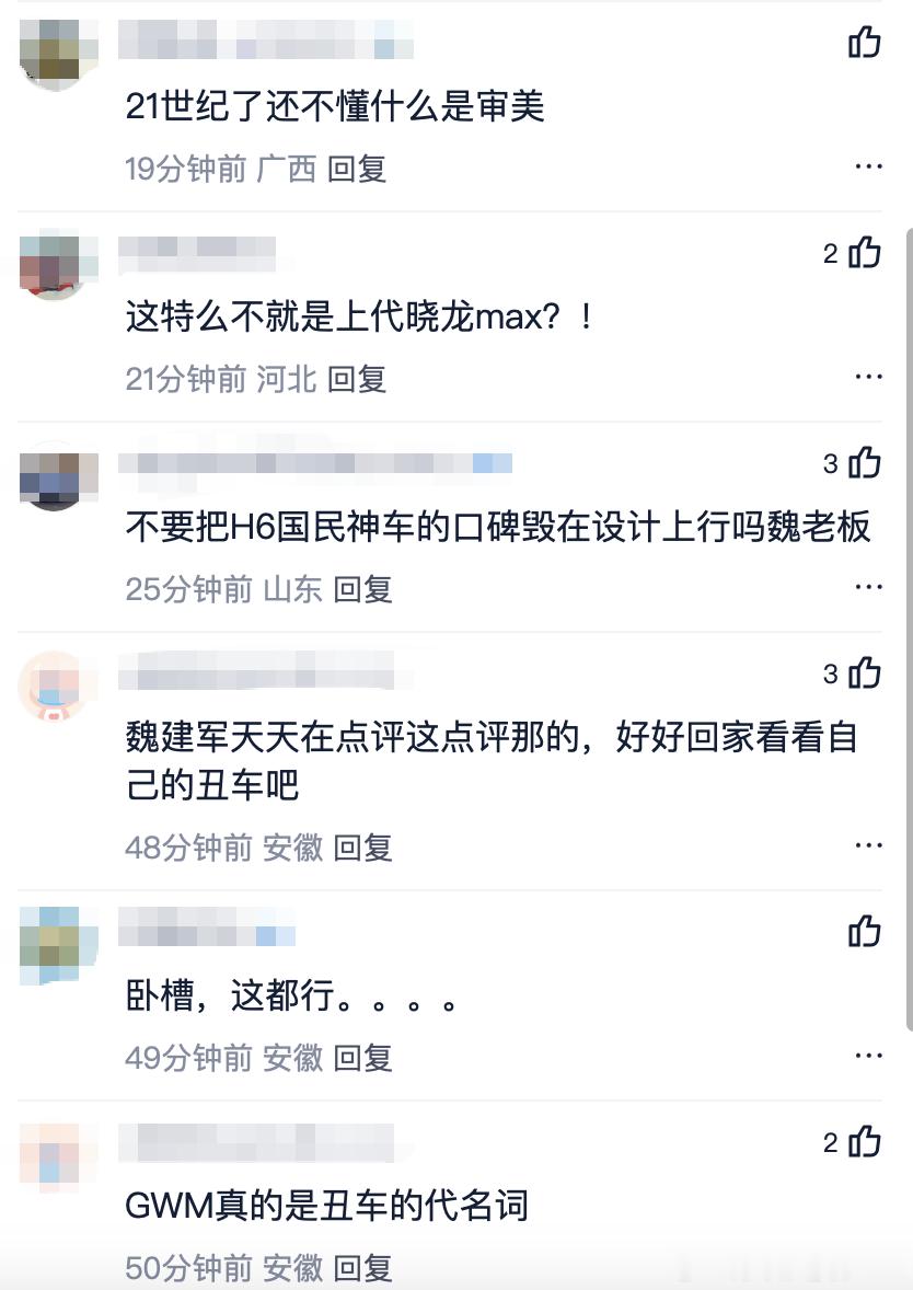 但是对于这款新车的官图,网友们并不是太感冒,甚至有网友称“不要把H6国民神车的口碑会在设计上”。