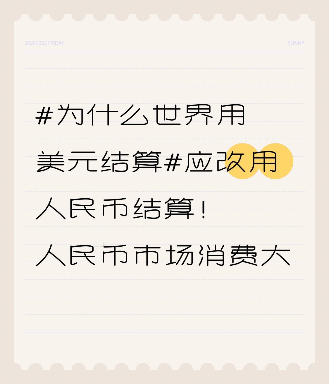 为啥世界都用美元结算啊,真心觉得该换成人民币。现在国际贸易里,美元那是主流,很多中国公司进口商品,大多也得用美元。外国公司接受人民币的还不多,欧元流通性又不如美元,用黄金支付更是不现实。 美国能成为消费大国,美元国际化和高汇率起了大作用。美元汇率高,美国物价低,他们能用很少的钱买很多东西。而且别国为了进口必需品,得大量出口换美元,美国印印钱就行。 中国市场消费大,人民币国际化很有必要。用人民币结算进口产品,能避免被美元薅羊毛,提升咱的消费能力,期待人民币早日成为主流结算货币!