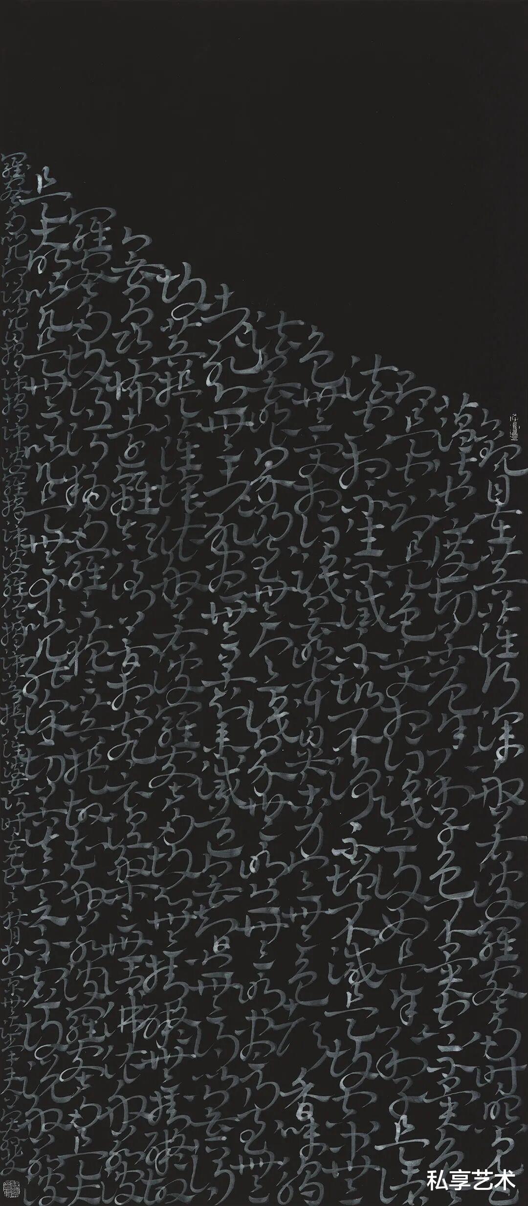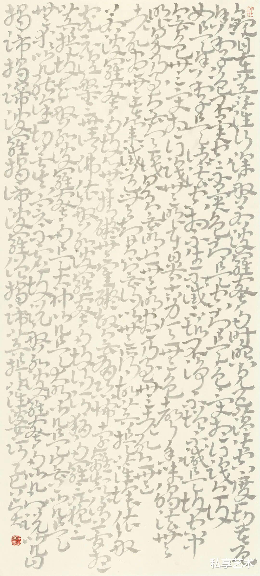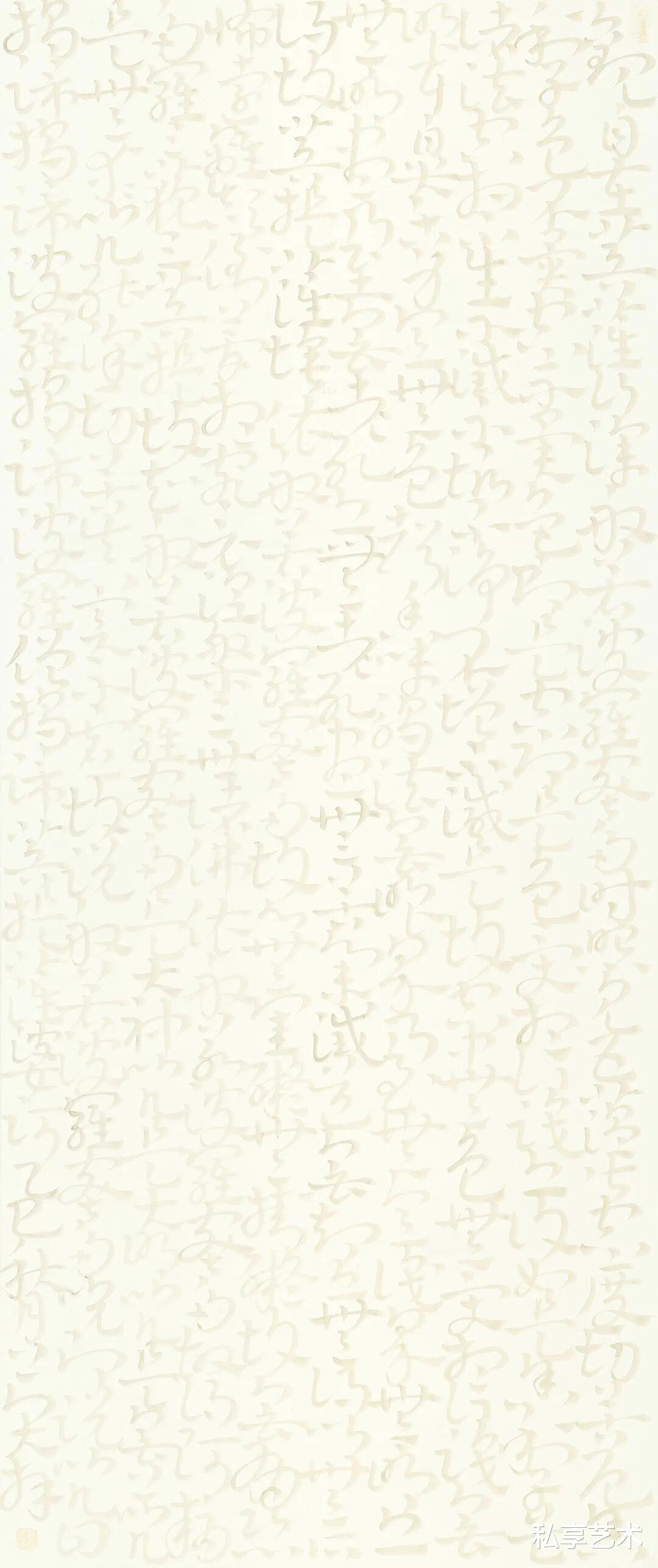 心经-136x68cm-白墨、银粉、香灰-纸本-2025