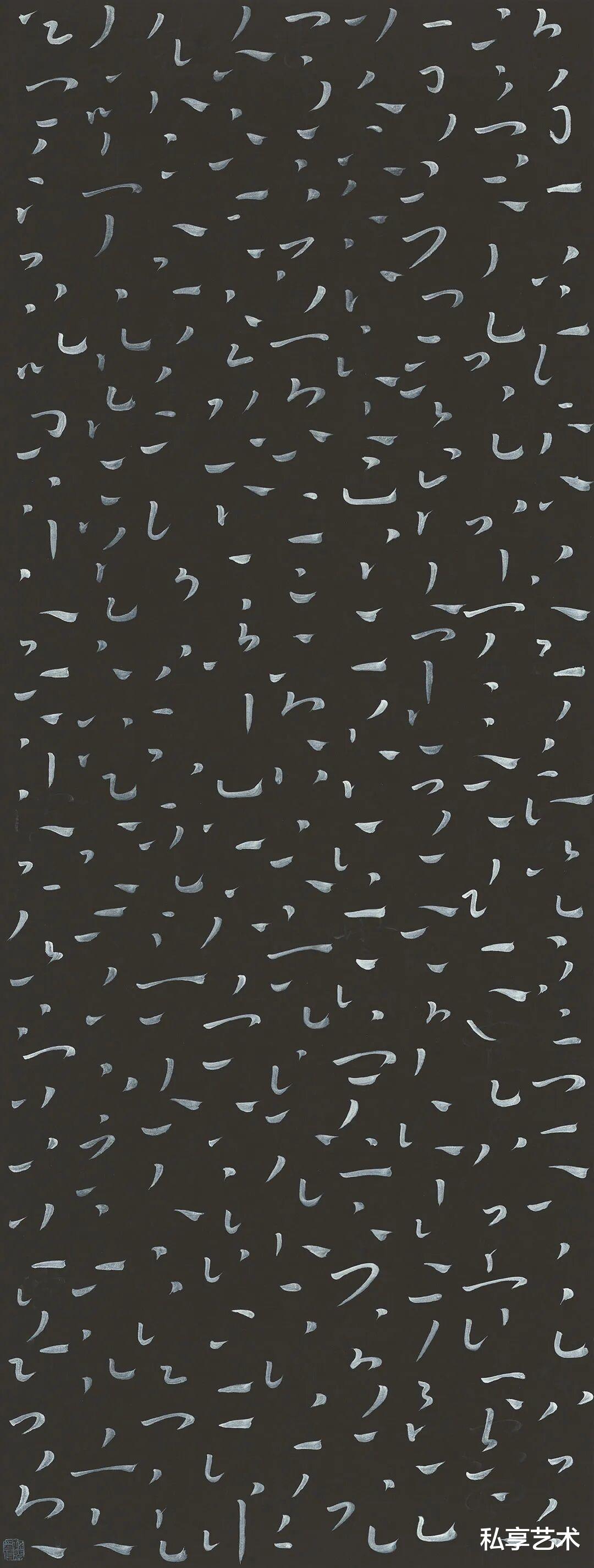 心经-138x50cm-白墨、银粉、香灰-纸本-2025
