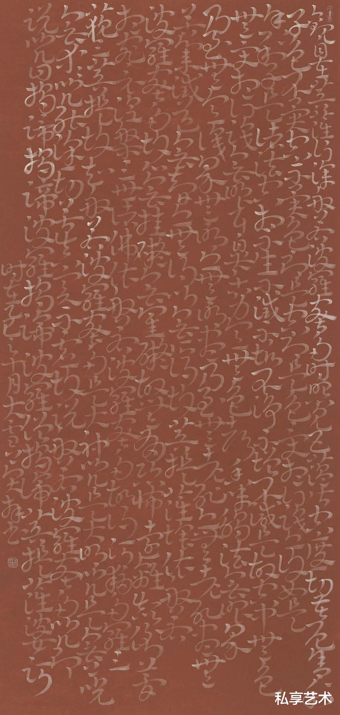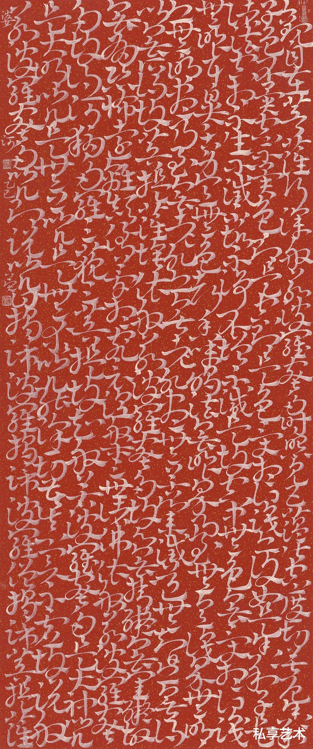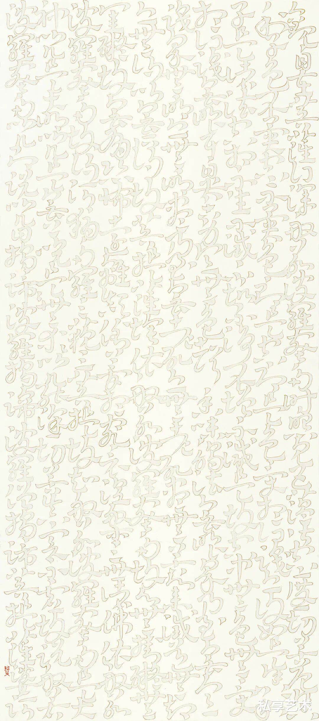 心经-136x68cm-朱砂墨、银粉、香灰-纸本-2025