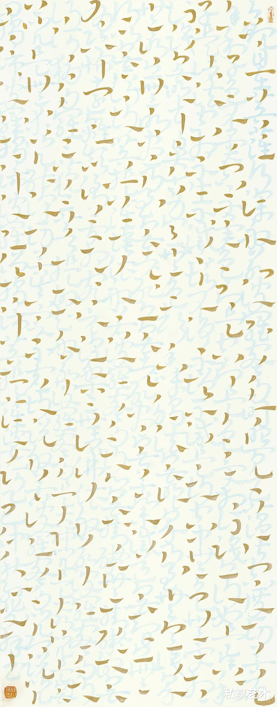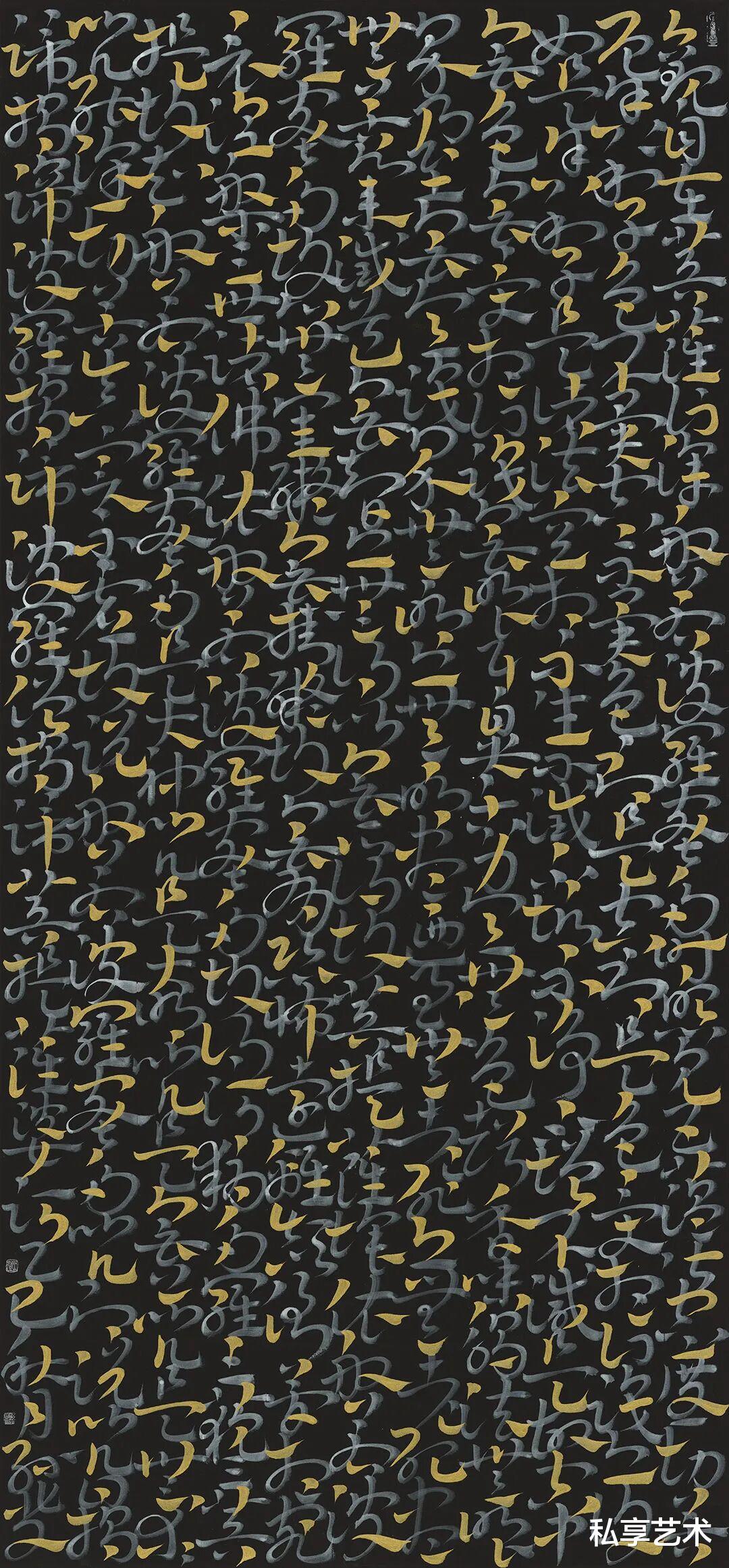 心经-136x68cm-金墨、银粉、香灰-纸本-2025