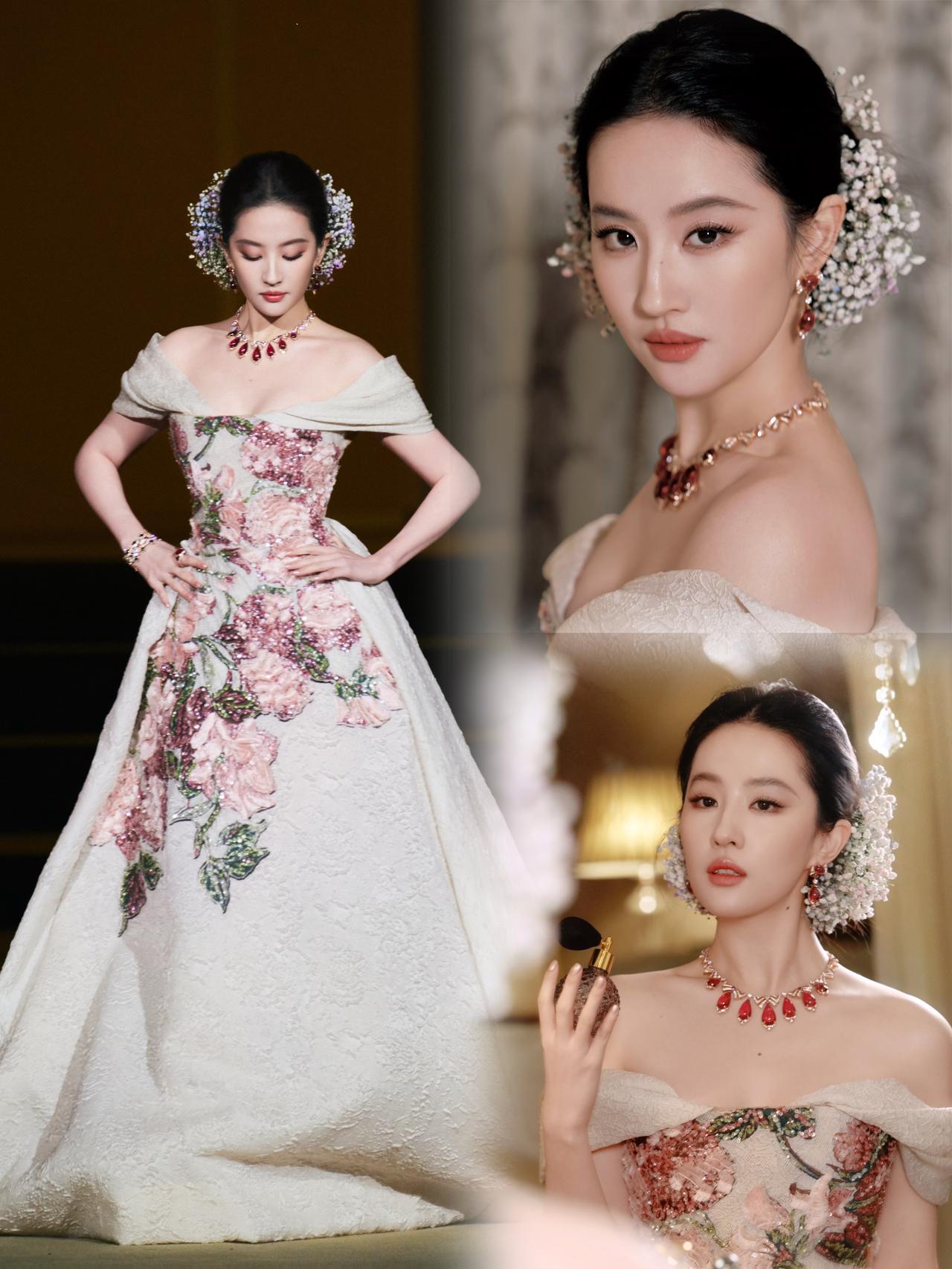 宝格丽这次估计又失算了吧! 1个多亿的红碧玺项链给刘亦菲, 结果却被她头上几十块的满天星抢了热搜! 当所有人都在关注她脖子上那条价值连城的宝格丽红碧玺项链时,观众的目光却被她发间那束不起眼的鲜花牢牢锁住。 这束普通的满天星在她头上仿佛被施了魔法,瞬间变成了价值连城的珠宝配饰。 不得不感叹,不愧是神仙姐姐啊!真正的美人从来不需要靠天价珠宝来衬托。 在她身上,几十元的鲜花都能戴出高级定制的感觉,这条天价项链反而成了陪衬。 不过这就是刘亦菲的魔力,她总能用最简单的配饰,演绎出最惊艳的效果!
