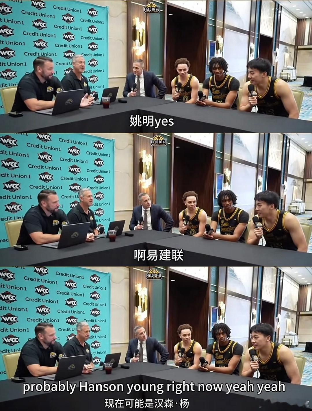 王俊杰在参加NCAA新赛季媒体日活动时,被问到心目中中国男篮有史以来最出色的三位球员是谁,小伙子给出的回答:姚明、易建联和杨瀚森
